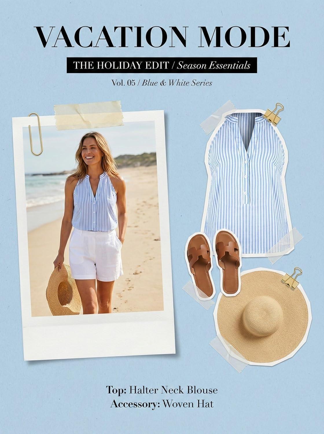 CUPSHE Women Tops Sleeveless Striped V Neck Tank Top Button Front Tee Shirt Casual(Blue)