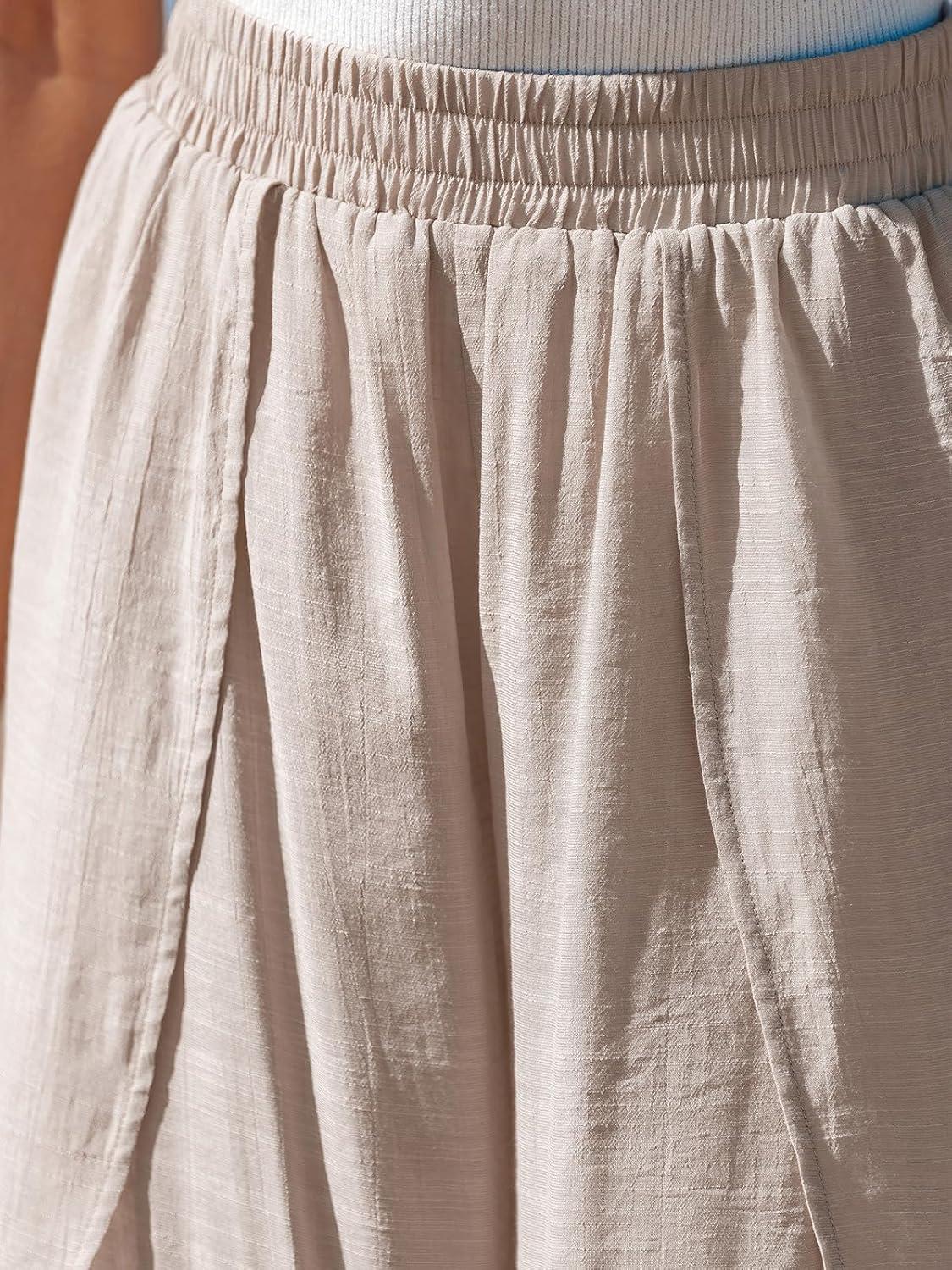 CUPSHE Womens Bathing Suit Cover up Wide Leg High Waist Beach Vacation Ruffled Hem Pants(Brown)