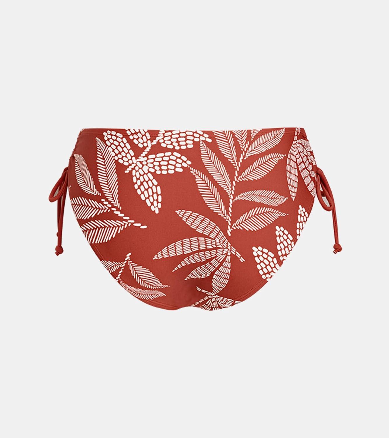 CUPSHE Women’s Bikini Bottoms Mid Rise Adjustable Drawstings Full Coverage Swimsuit Only Bottoms(Brick Red Leaf)