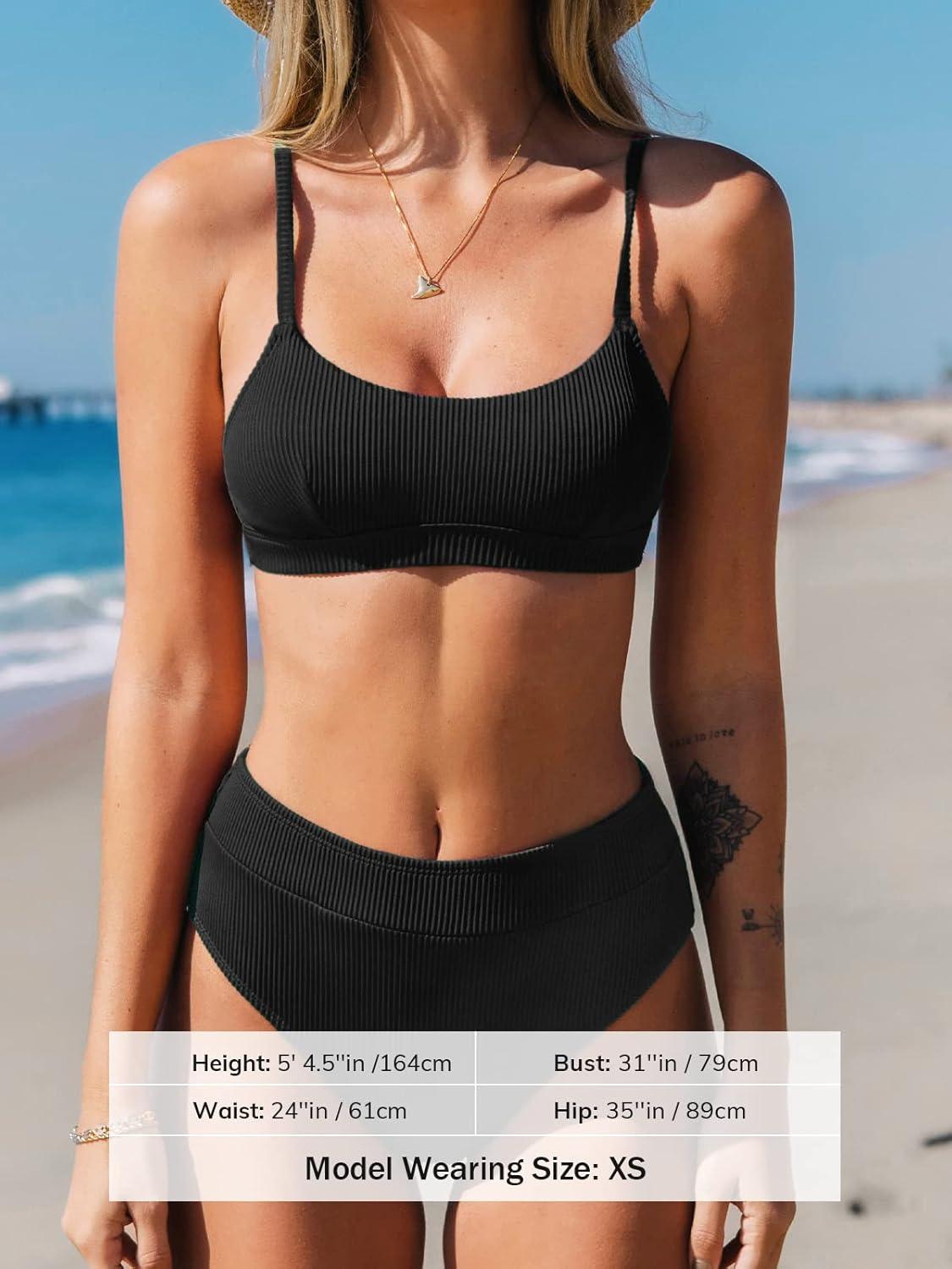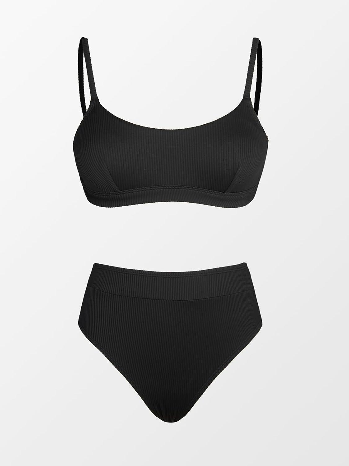 CUPSHE Women’s Bikini Set Two Piece Swimsuit High Waisted Scoop Neck Swimwear(Black)