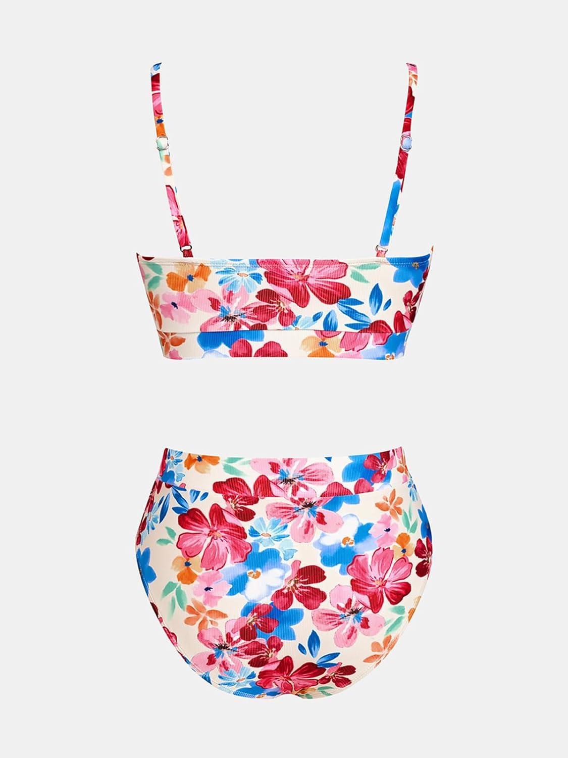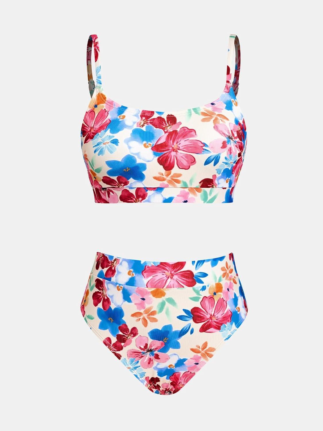 CUPSHE Women’s Bikini Set Two Piece Swimsuits High Waisted Scoop Neck Spaghetti Adjustable Straps Textured(Red/Blue Floral)