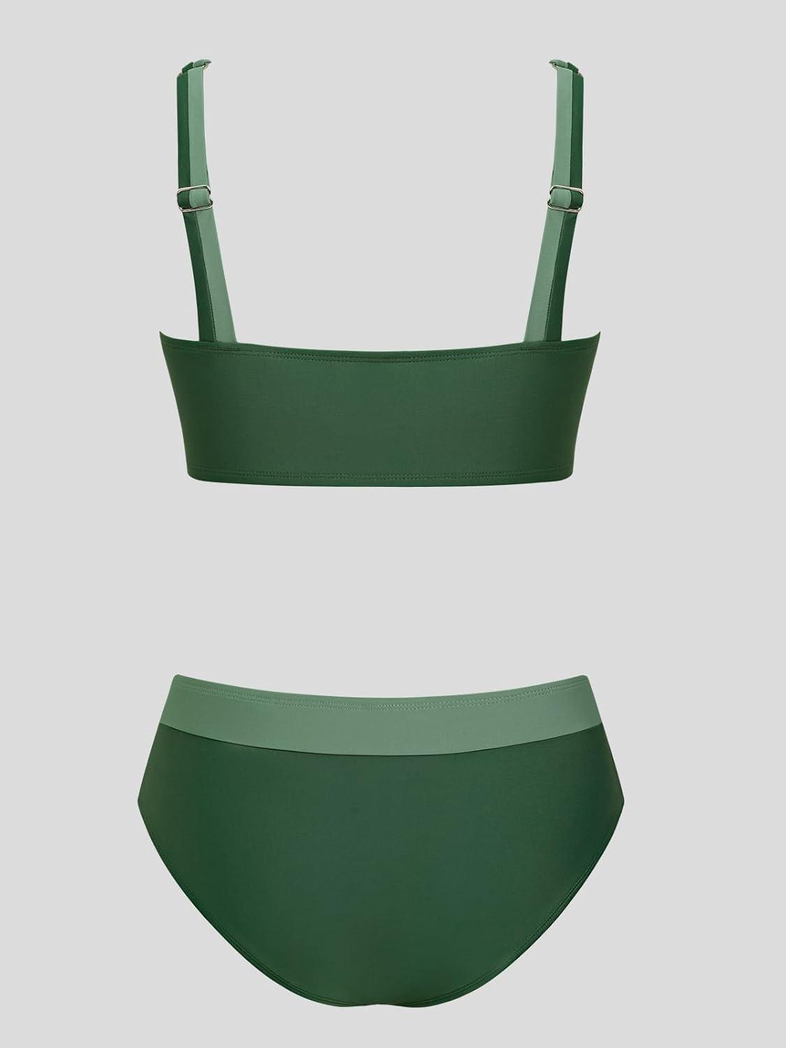 CUPSHE Women’s Bikini Sets Scoop Neck Adjustable Straps Sporty Bathing Suit High Rise Colorblock(Black/Green)
