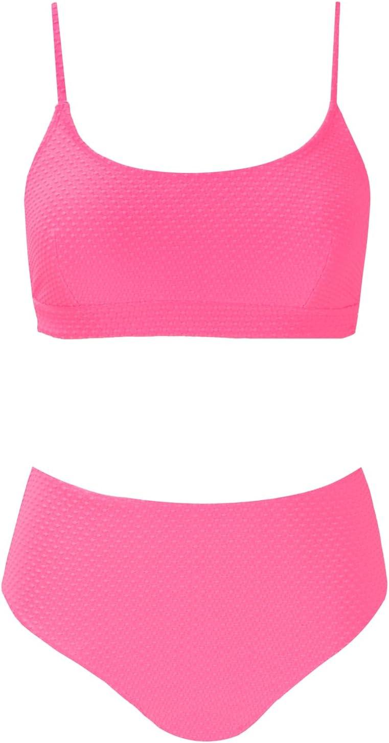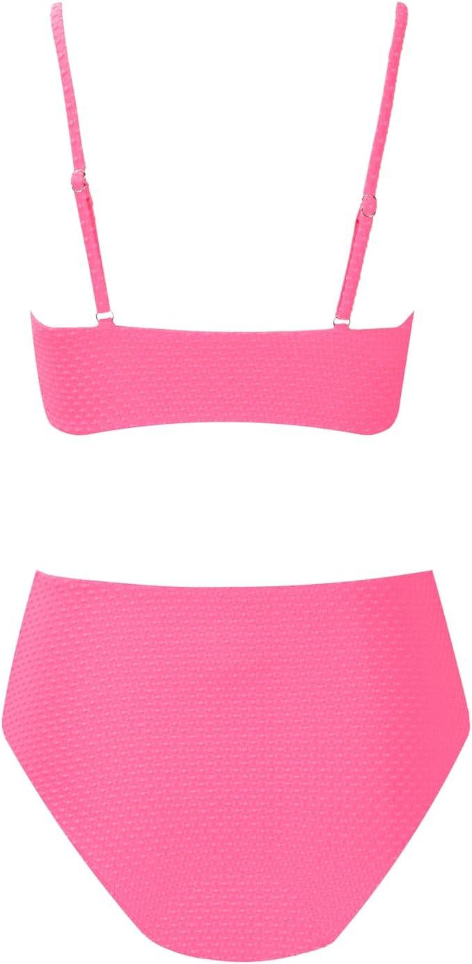 CUPSHE Women’s Bikini Sets Two Piece Bathing Suit High Waisted Ribbed Texture Widen Trim(Pink)