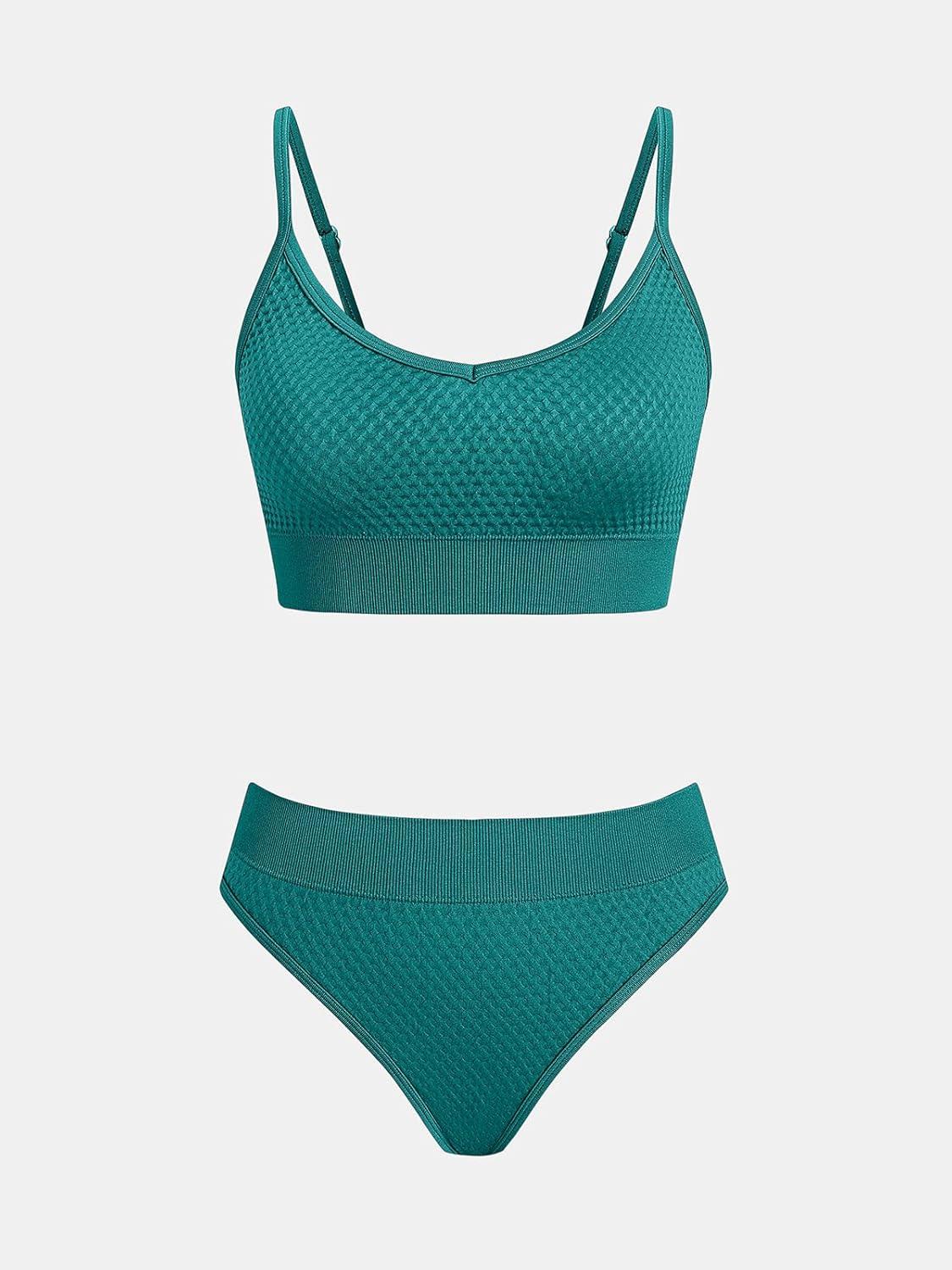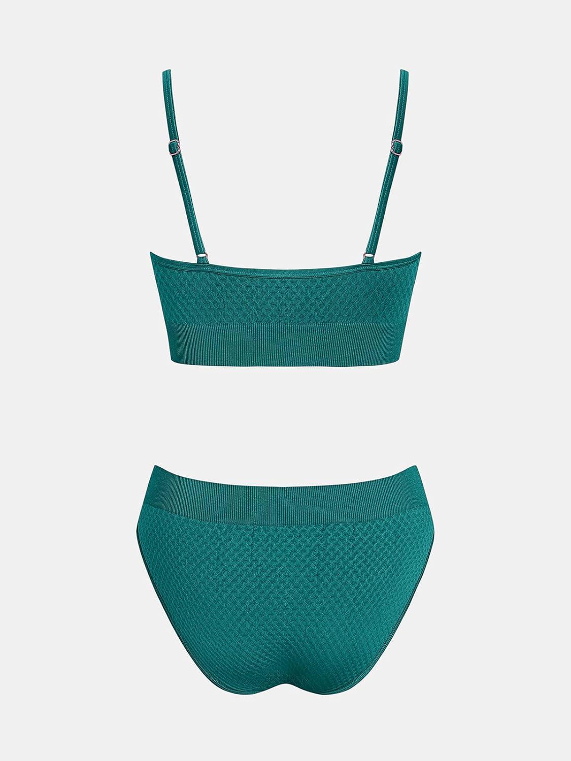 CUPSHE Women’s Bikini Sets Two Piece Swimsuit Sporty Mid Rise Scoop Neck Adjustable Spaghetti Straps Textured Midkini(Teal Green)