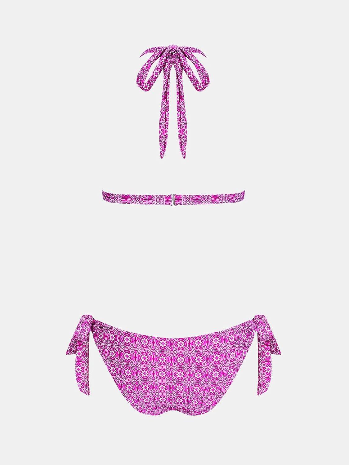 CUPSHE Women’s Bikini Sets Two Piece Swimsuit V Neck Reversible Bottom Halter Self Tie Back Hook(White/Pink/Floral)
