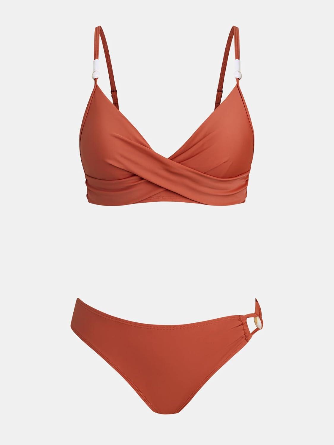 CUPSHE Women’s Bikini Sets Two Piece Swimsuit with Bead V Neck Wrapped Front Bathing Suit Mid Rise Back Hook(Wine Red)