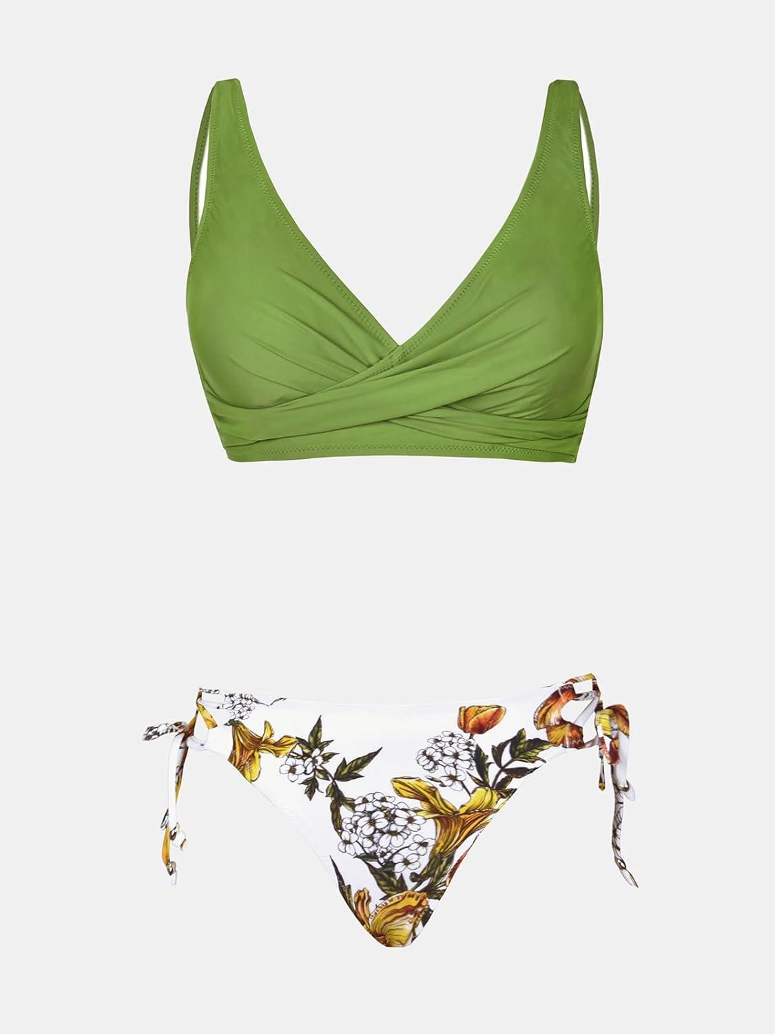 CUPSHE Women’s Bikini Swimsuit Front Cross Lace Up Two Piece Bathing Suit(Olive Green)