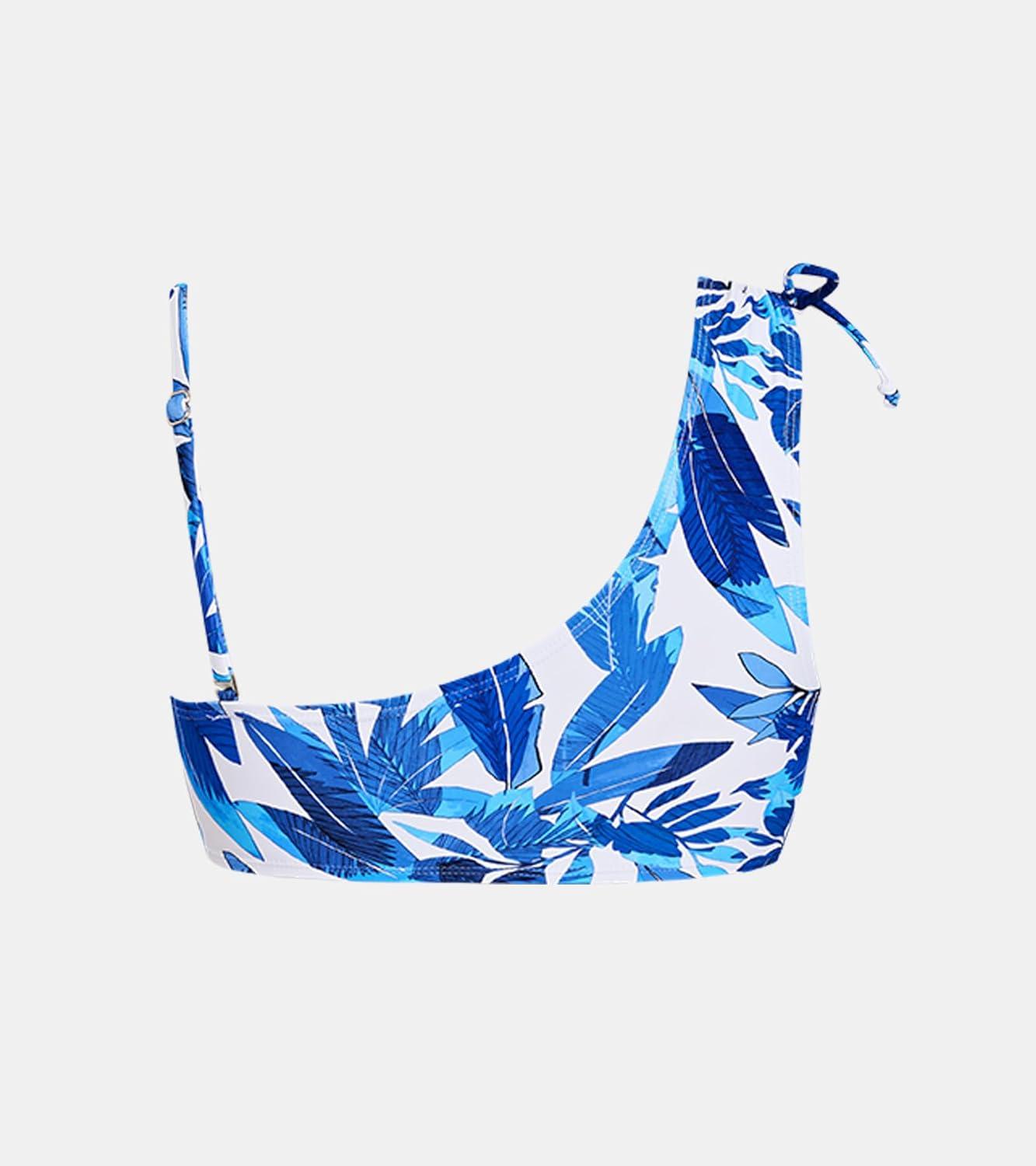 CUPSHE Women’s Bikini Top Swimsuit Only One Shoulder Bathing Suit Asymmetrical Neck Swim Tank Top(White/Blue Tropical)