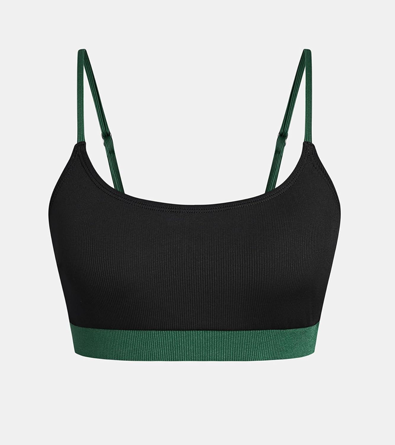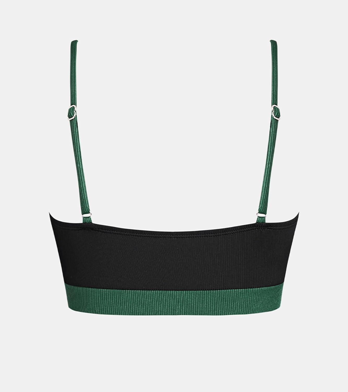 CUPSHE Women’s Bikini Top Swimsuit Only Sporty Textured Bathing Suit Tank Top Adjustable Straps(Black/Dark Green)
