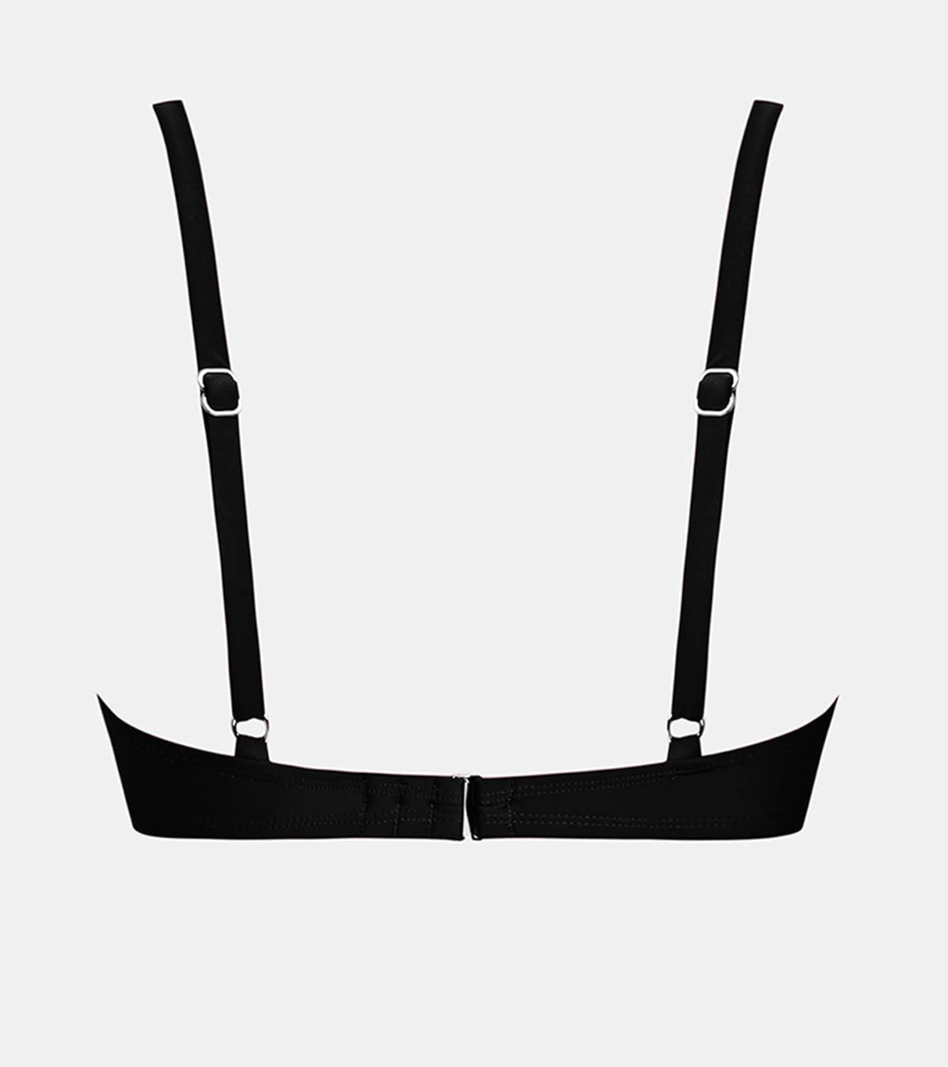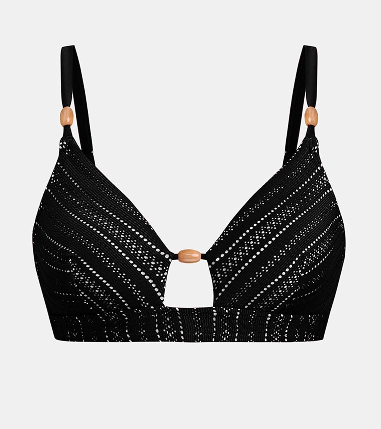 CUPSHE Women’s Bikini Top Swimsuit Only V Neck Textured Bathing Suit Back Hook Adjustable Straps Beading(Black)