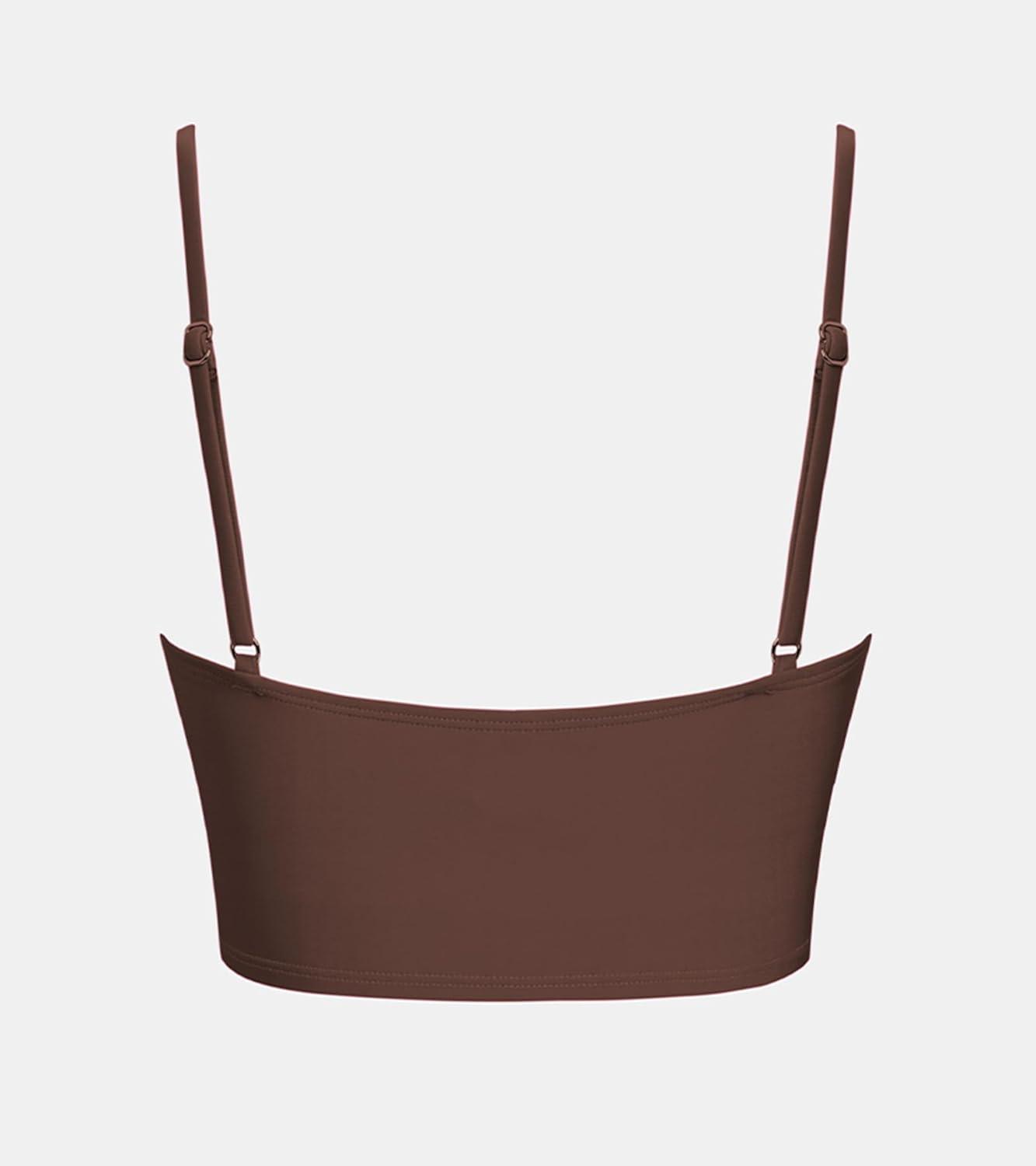 CUPSHE Womens Bikini Top Swimsuit Ruching Bandeau Top Spaghetti Adjustable Straps(Chocolate Brown)
