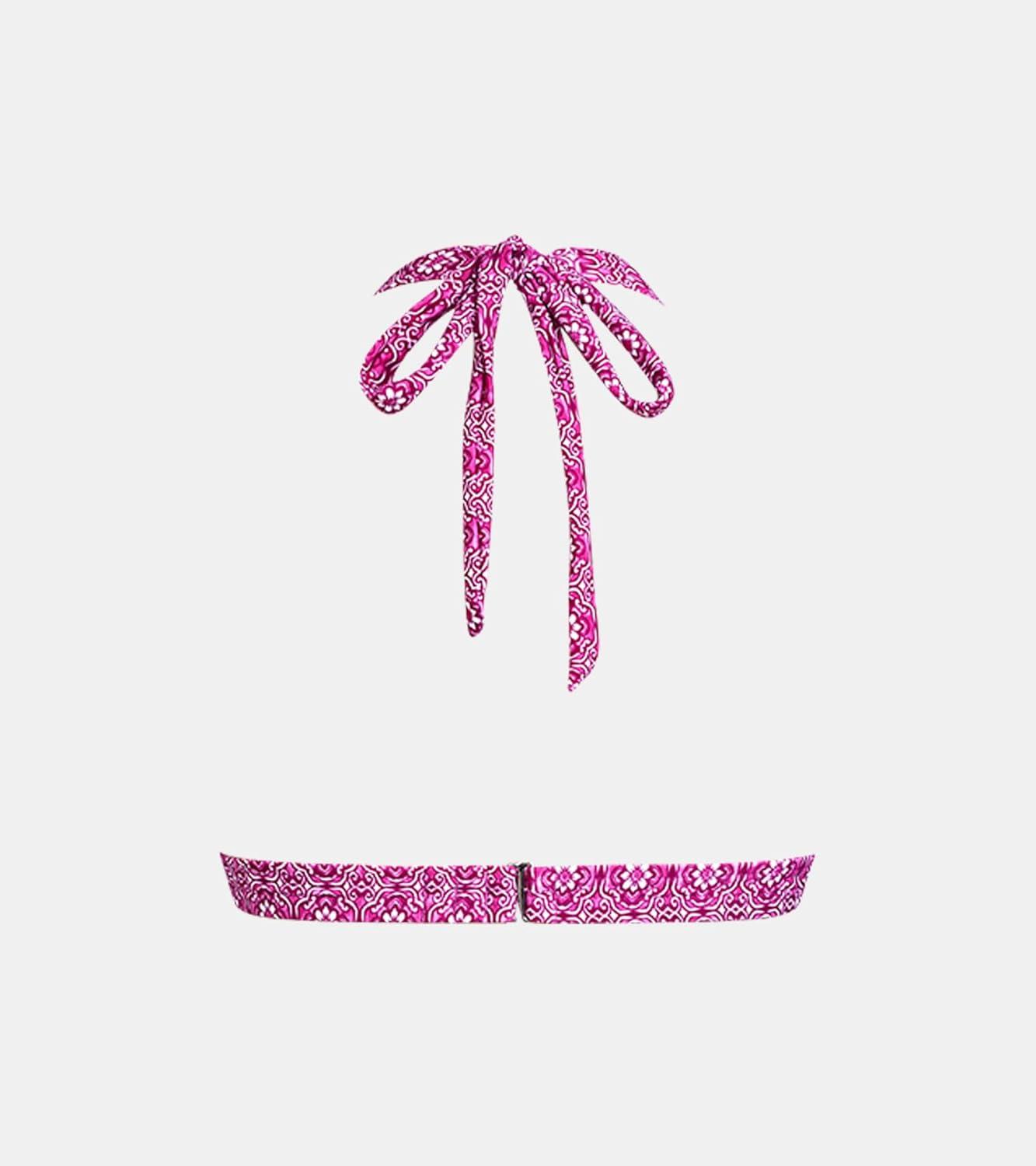 CUPSHE Women’s Bikini Top V Neck Halter Stitching Back Hook Bathing Suit(White/Pink Floral)