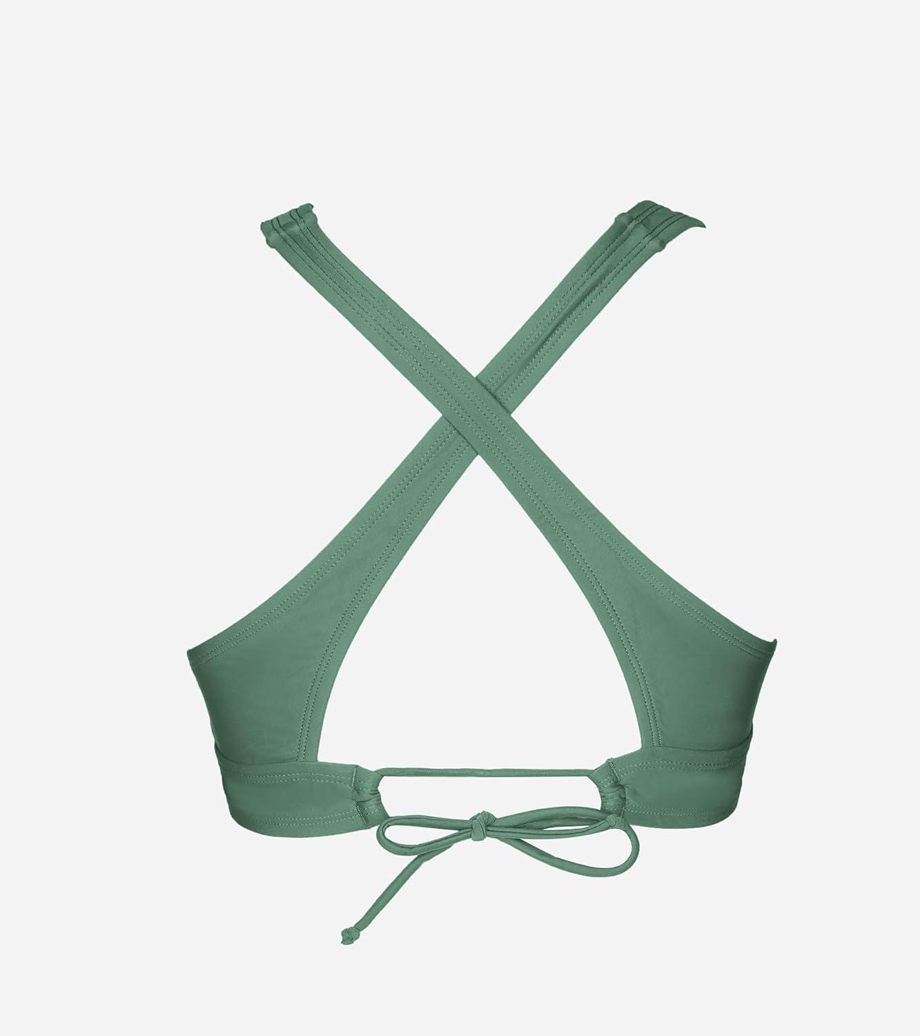 CUPSHE Women’s Bikini Top V Neck Triangle Top Wide Straps Cross Back Lace up(Olive Green)