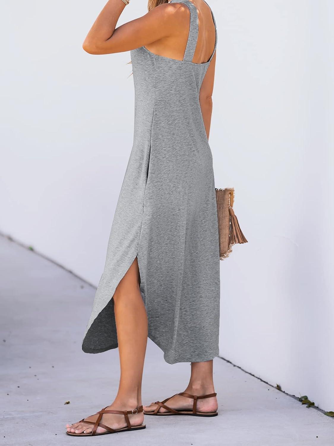 CUPSHE Women’s Cami Maxi Dress Sleeveless V Neck Solid Dresses Casual Summer(Grey)