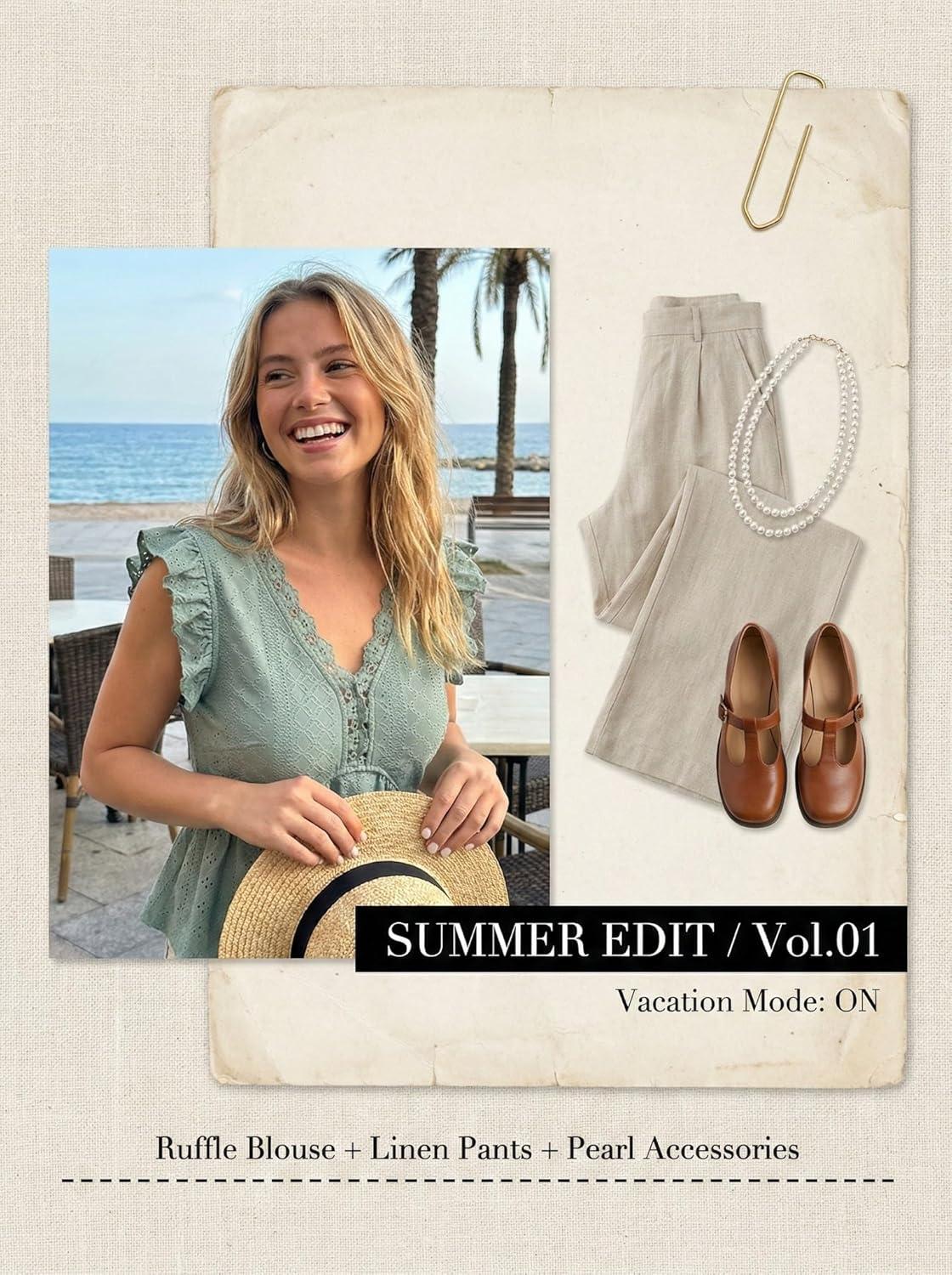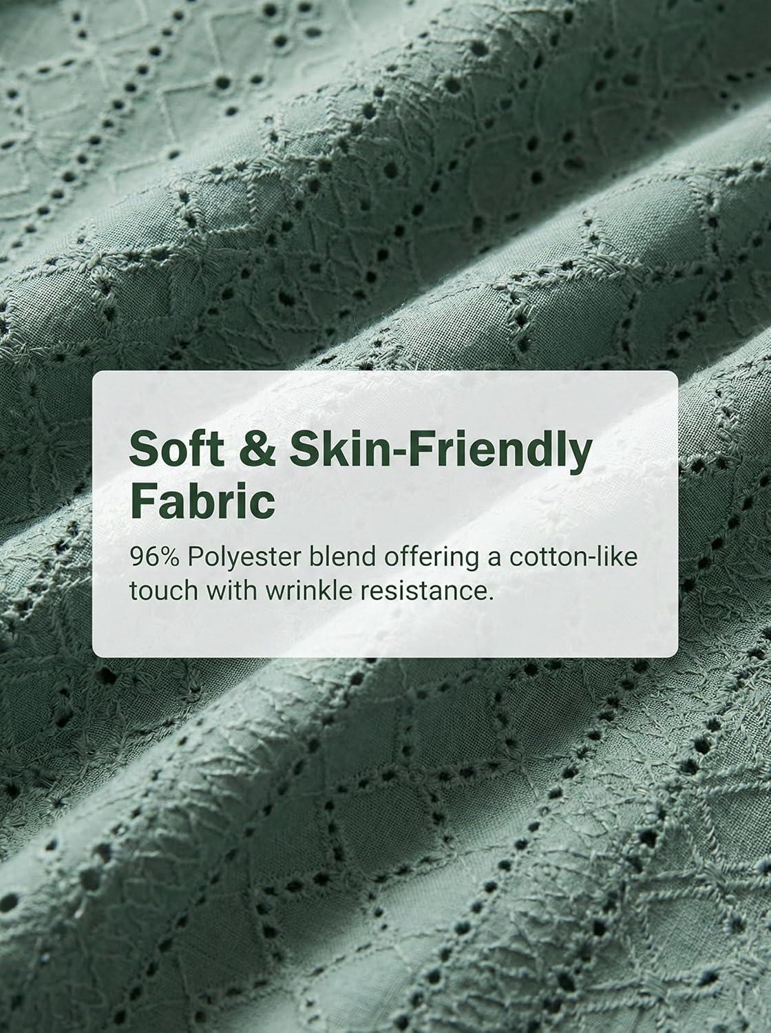 CUPSHE Womens Eyelet Tops Lace Crochet V Neck Ruffle Sleeve Blouse Casual Summer Peplum Shirts(Green)