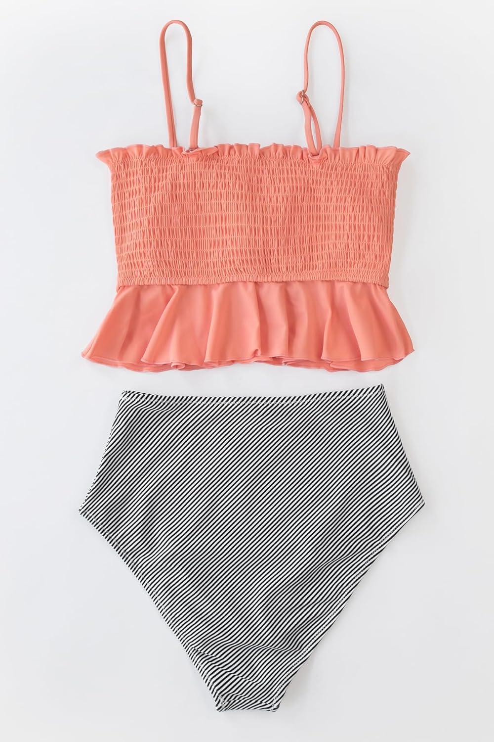 CUPSHE Women’s High Waist Bikini Swimsuit Ruffle Two Piece Bathing Suit(Peach)