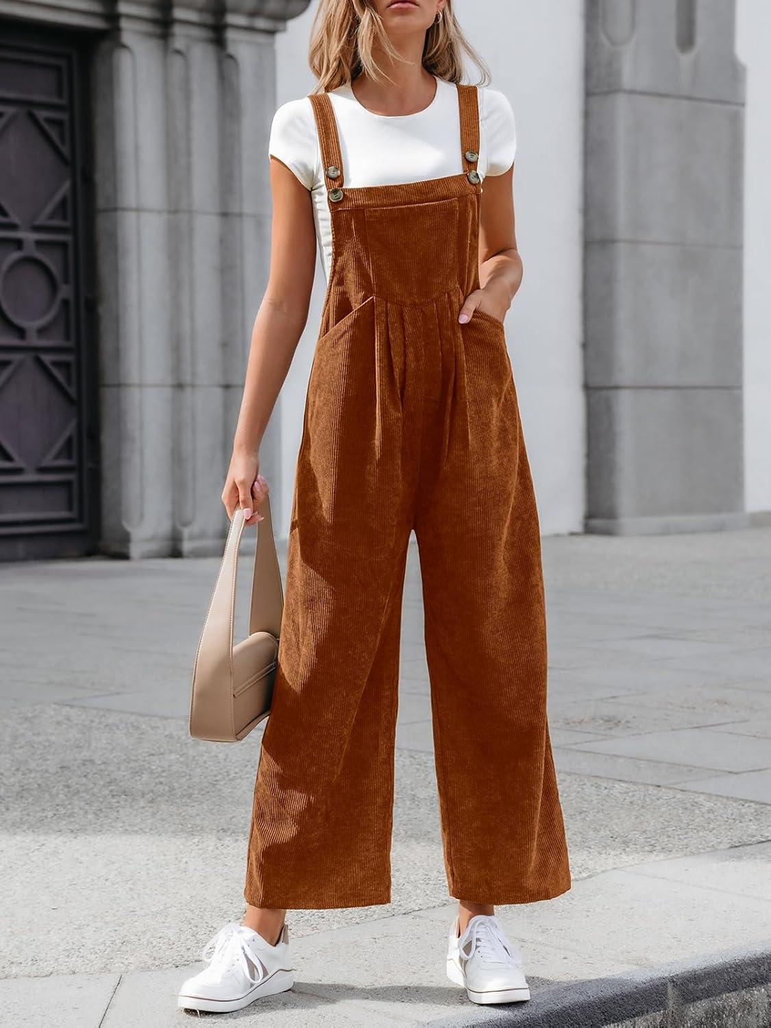 CUPSHE Womens Jumpsuit Corduroy Overalls Square Neck Sleeveless Wide Leg Jumpsuits Pockets Casual Outfit Loose Fall Romper(Orange Brown)