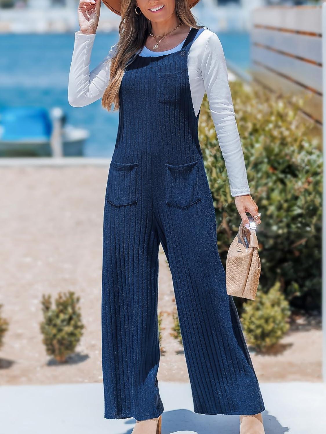 CUPSHE Women’s Jumpsuit Sleeveless Square Neck Straight Leg One Piece Romper Casual Beach Vacation(Navy)