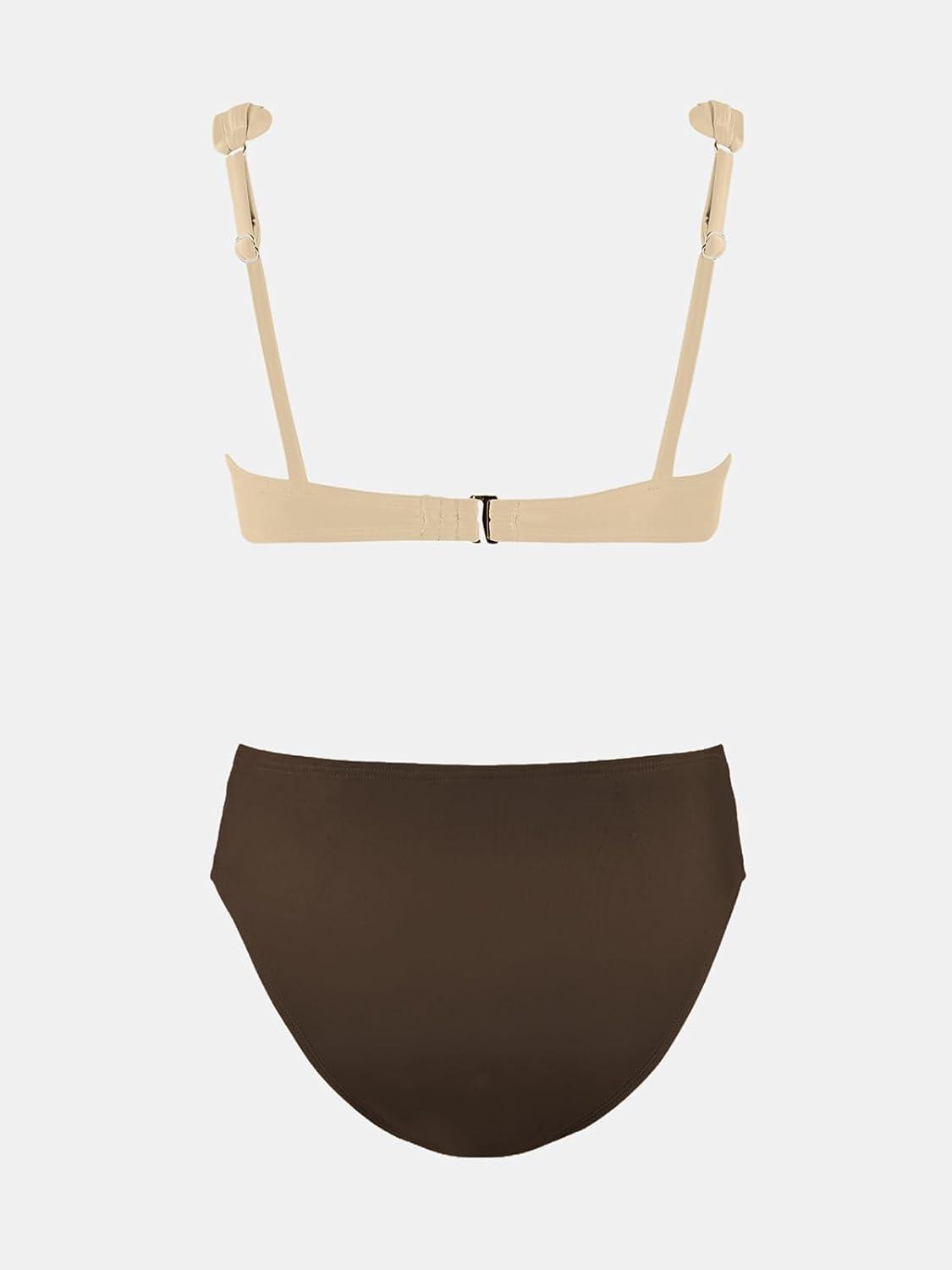 CUPSHE Women’s Maternity Bikini Sets Pregnancy Swimsuit Low Rise Scalloped Scoop Neck Adjustable Straps Back Hook(Beige/Brown)