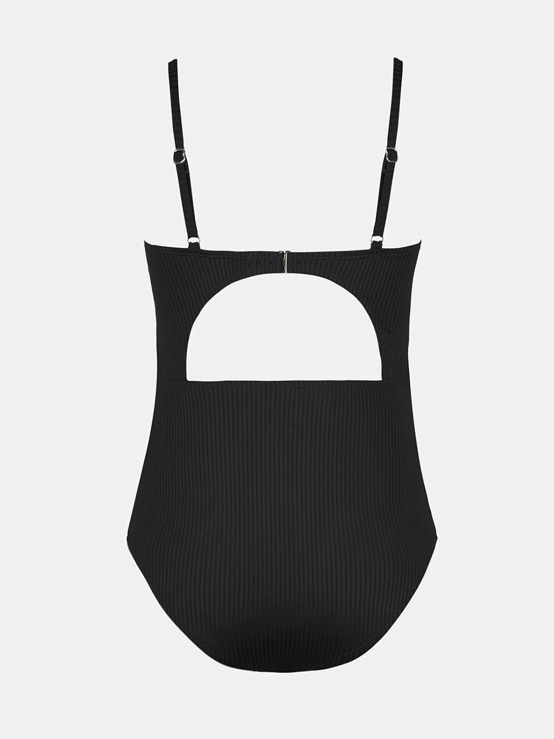 CUPSHE Women’s Maternity One Piece Swimsuit Adjustable Spaghetti Strap Scoop Neck Pregnancy Bathing Suit Back Cutout Grommet(Black)