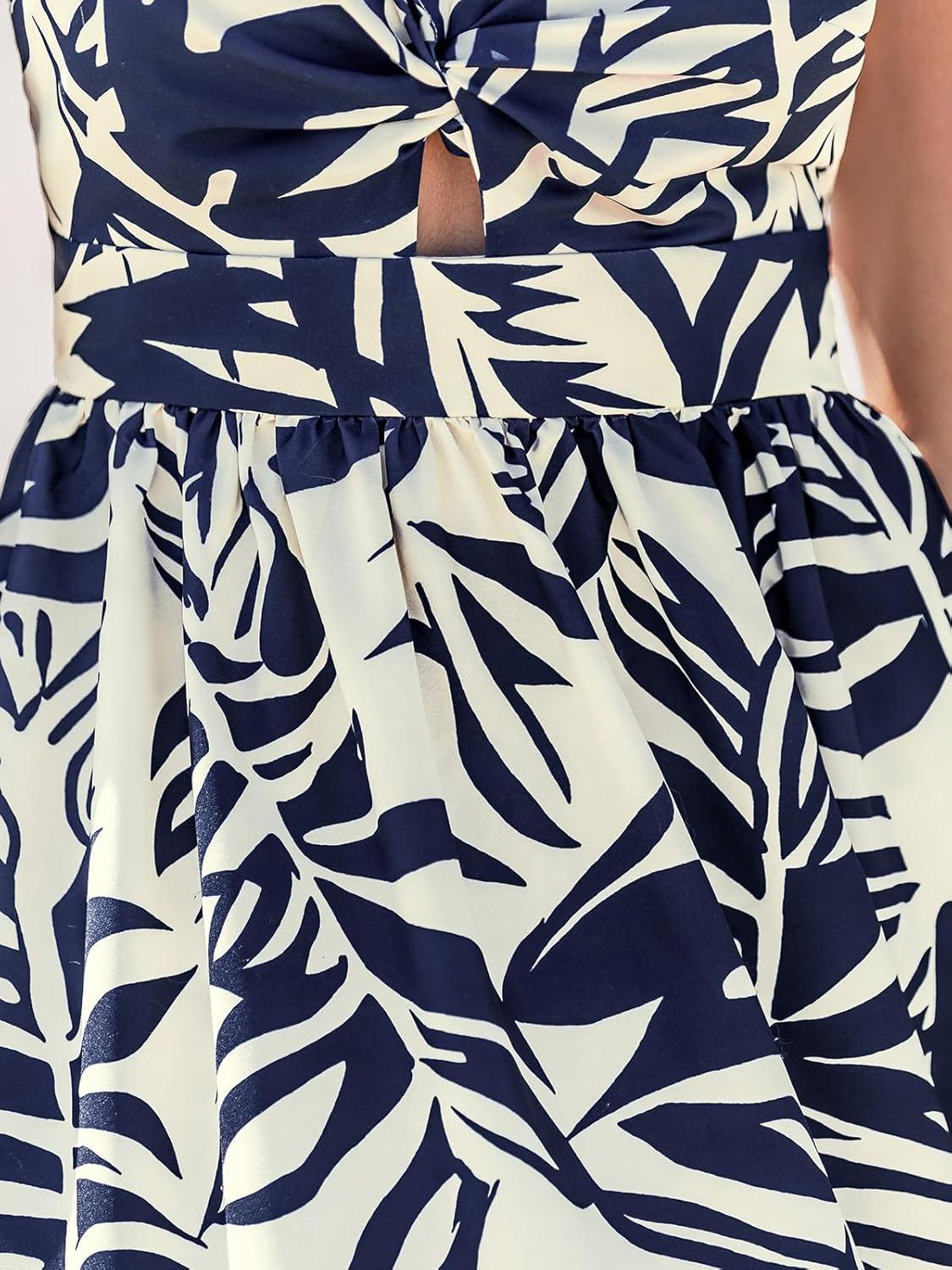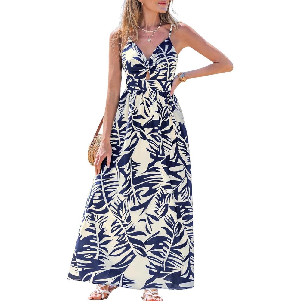 CUPSHE Women’s Maxi Dress Floral Print Twisted V Neck Sleeveless Long Dress Summer Casual Dress(Navy Tropical)