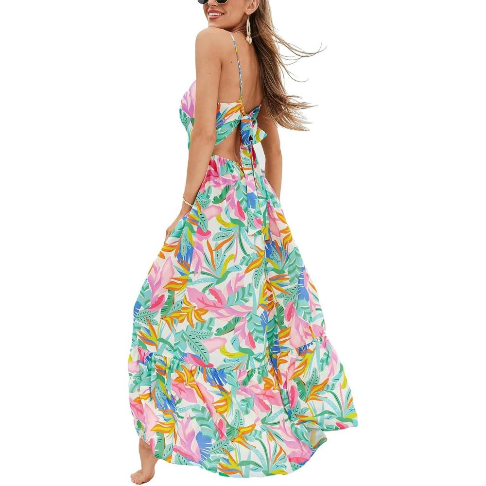 CUPSHE Women’s Maxi Dress Floral Print Twisted V Neck Sleeveless Long Dress Summer Casual Dress(Pink Tropical)