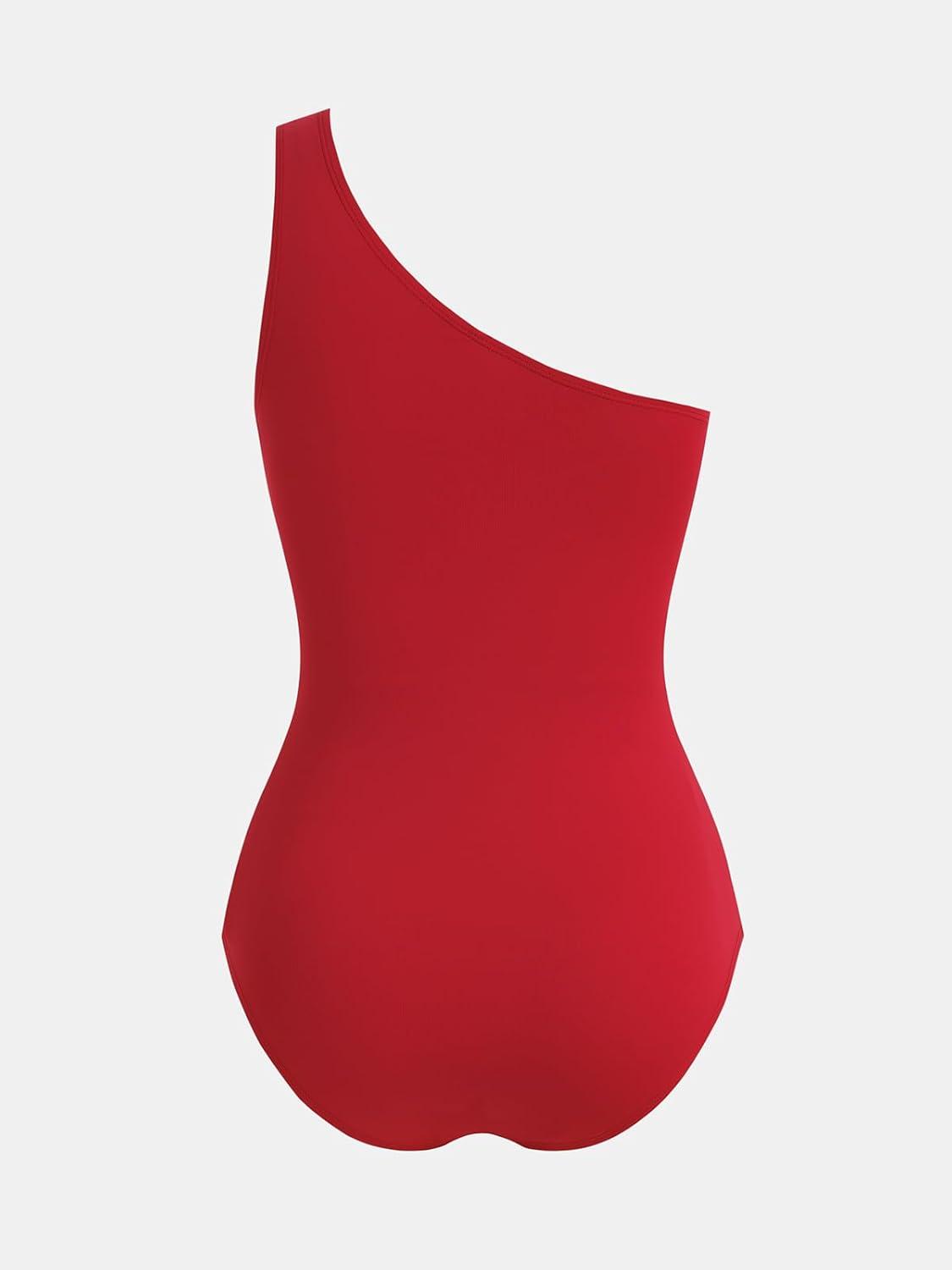 CUPSHE Women’s One Piece Swimsuit Asymmetrical Neck One Shoulder Ruched Bathing Suit Swimwear(True Red)
