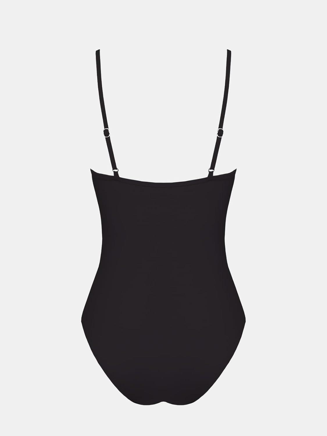 CUPSHE Women’s One Piece Swimsuit Deep V Wire Push Up Bathing Suit Tummy Control Retro Slimming Swimwear Ruched(Black)