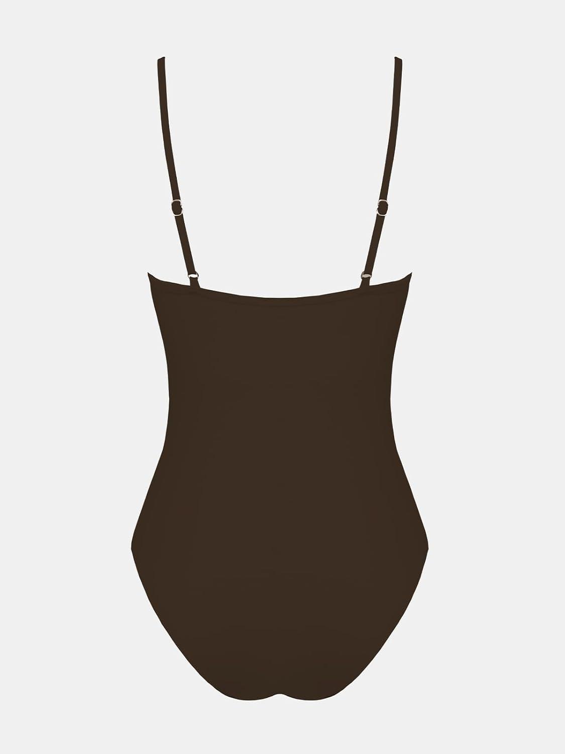 CUPSHE Women’s One Piece Swimsuit Deep V Wire Push Up Bathing Suit Tummy Control Retro Slimming Swimwear Ruched(Chocolate Brown)