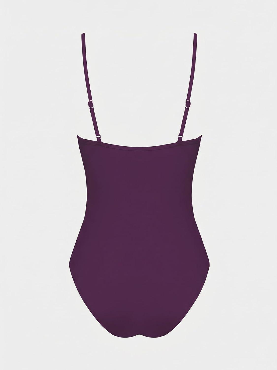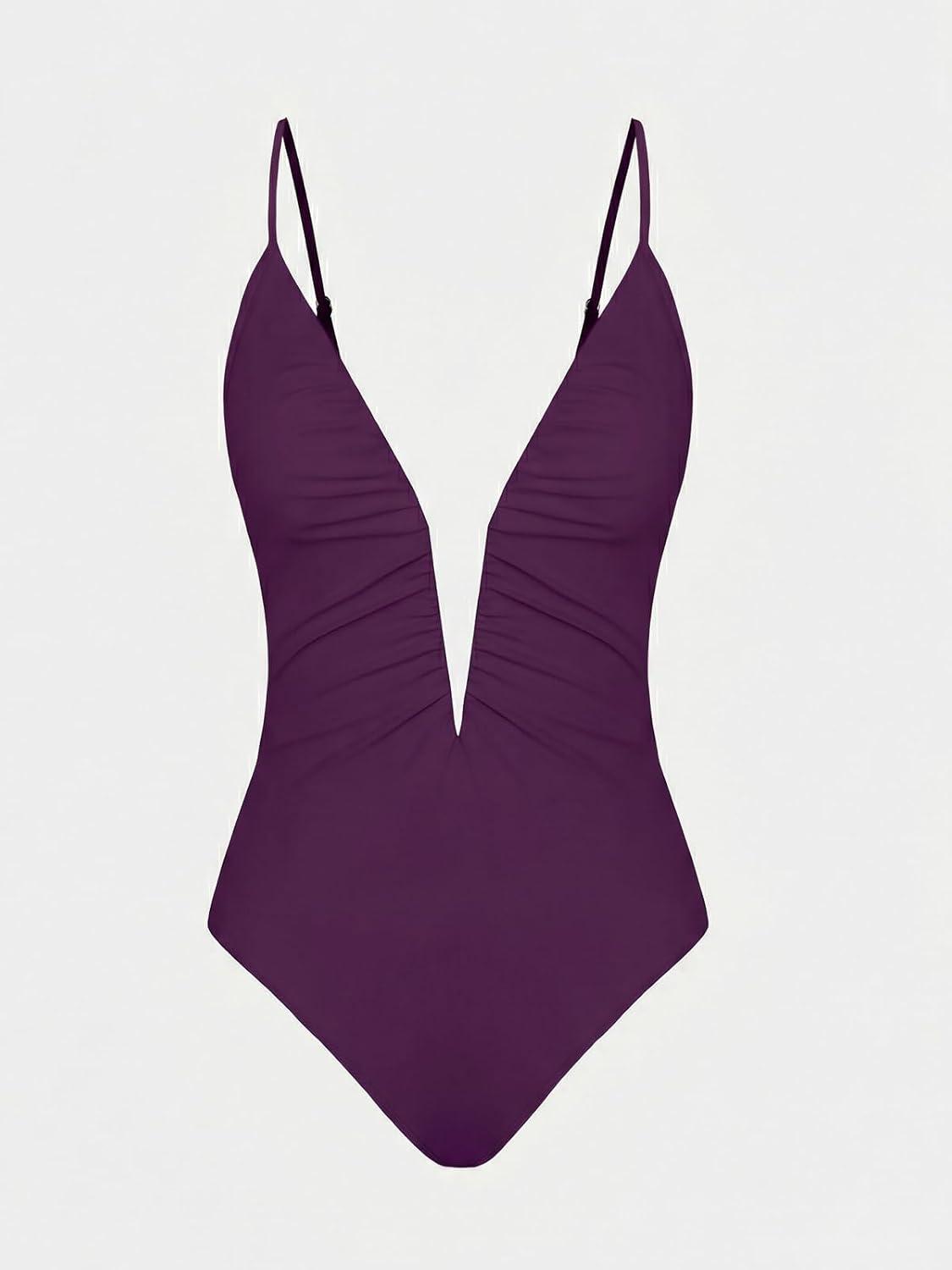 CUPSHE Women’s One Piece Swimsuit Deep V Wire Push Up Bathing Suit Tummy Control Retro Slimming Swimwear Ruched(Purple)