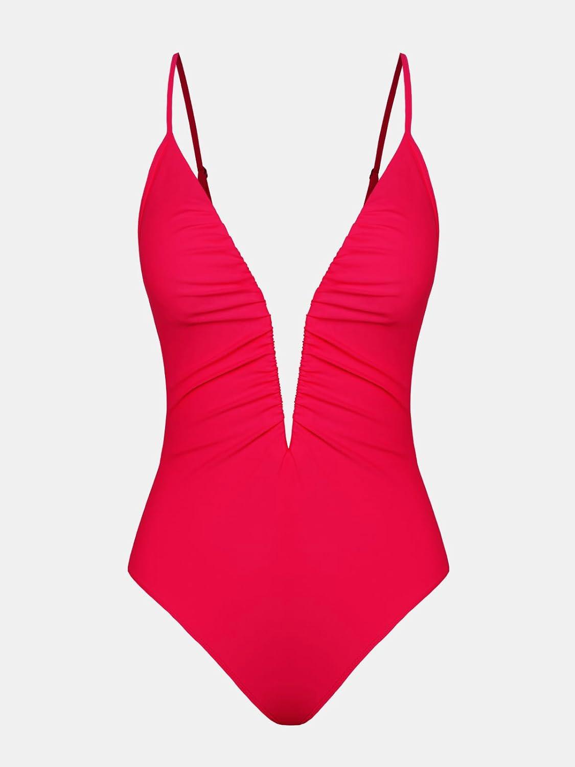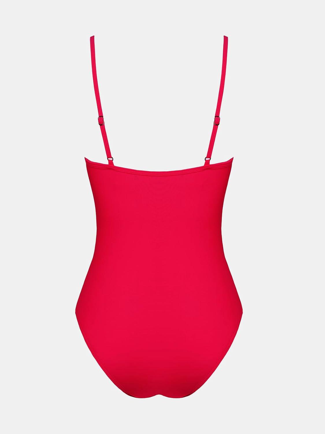 CUPSHE Women’s One Piece Swimsuit Deep V Wire Push Up Bathing Suit Tummy Control Retro Slimming Swimwear Ruched(Red)