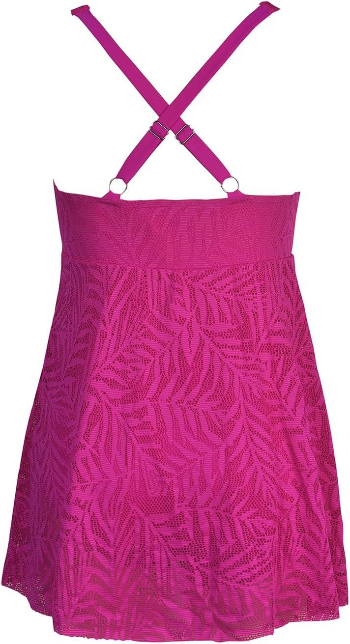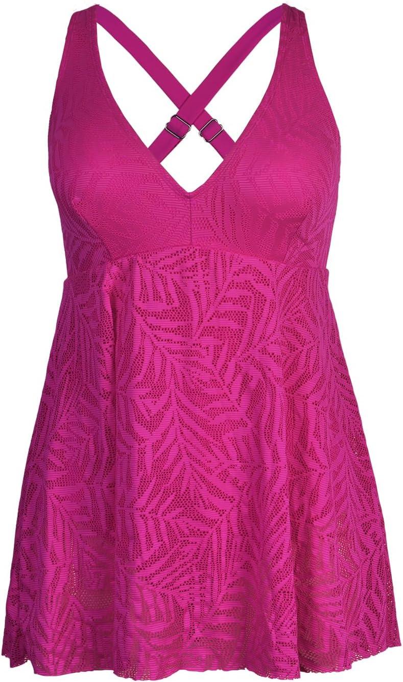CUPSHE Women’s One Piece Swimsuit Plus Size Bathing Suit Mesh Hollow Out Cross Back Split Swim Dress Leaf Texture(Fuchsia Pink)