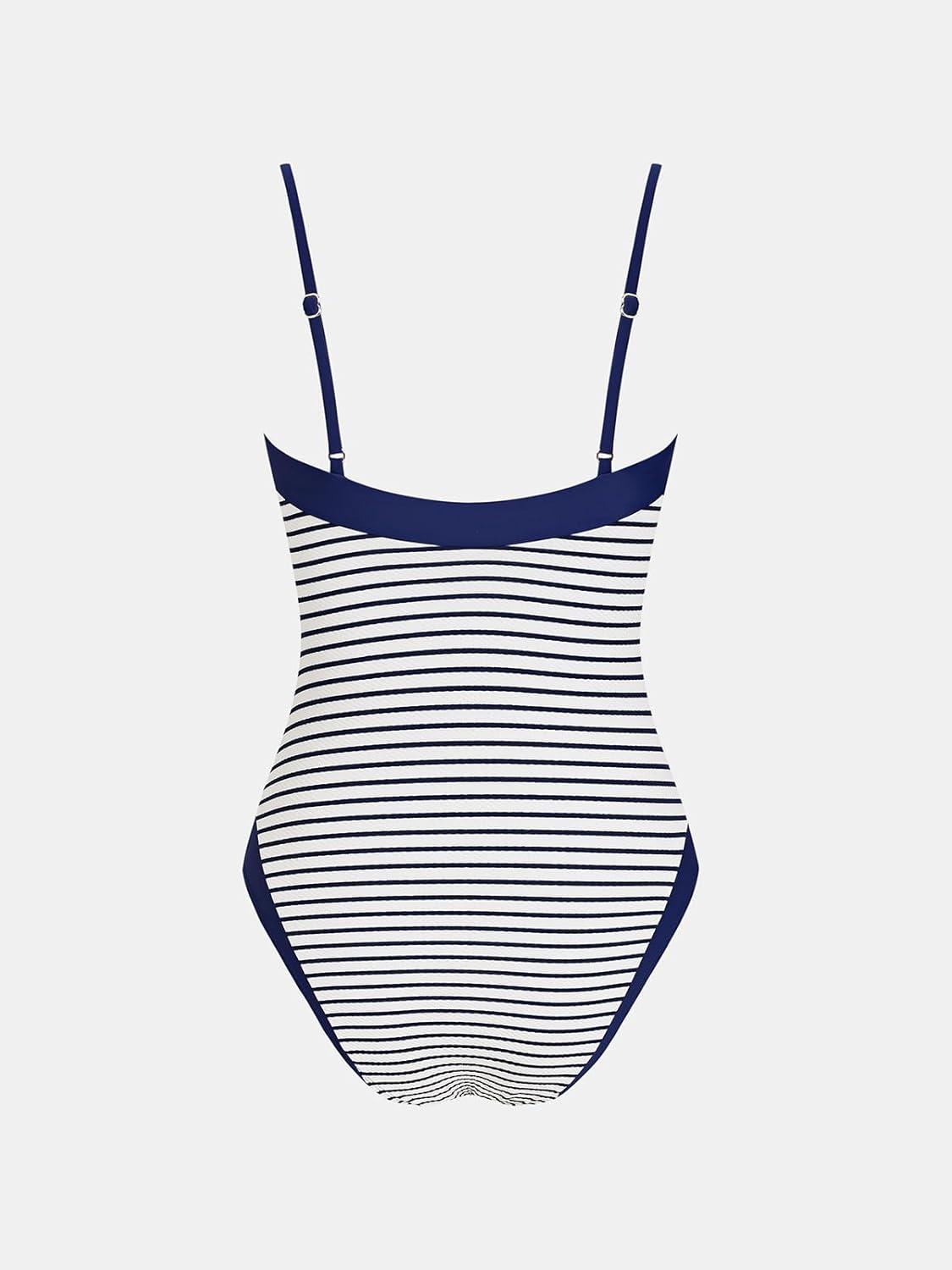 CUPSHE Women’s One Piece Swimsuit Square Neck Bathing Suit Adjustable Straps Color Block Textured Swimwear(Blue White/Stripe)