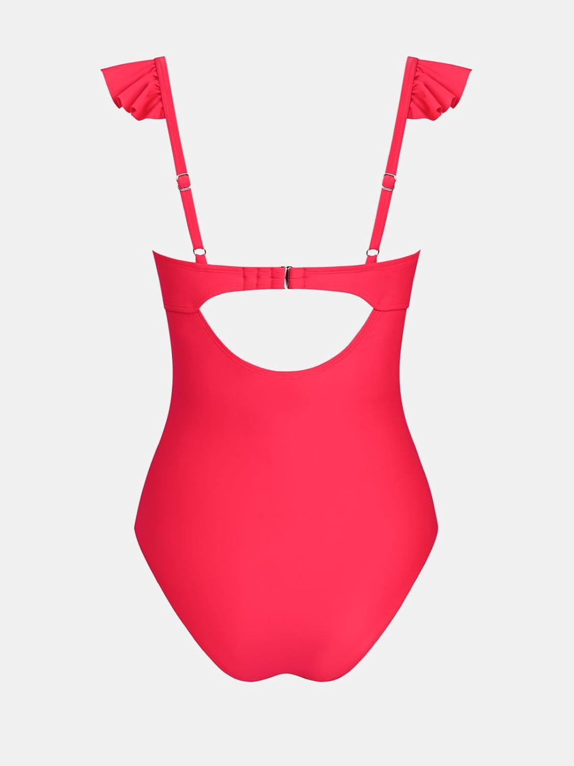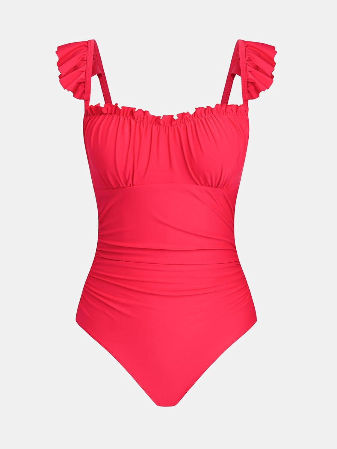 CUPSHE Women’s One Piece Swimsuit Square Neck Ruffled Sleeves Back Hook Cutout Bathing Suit Adjustable Straps Swimwear(Red)