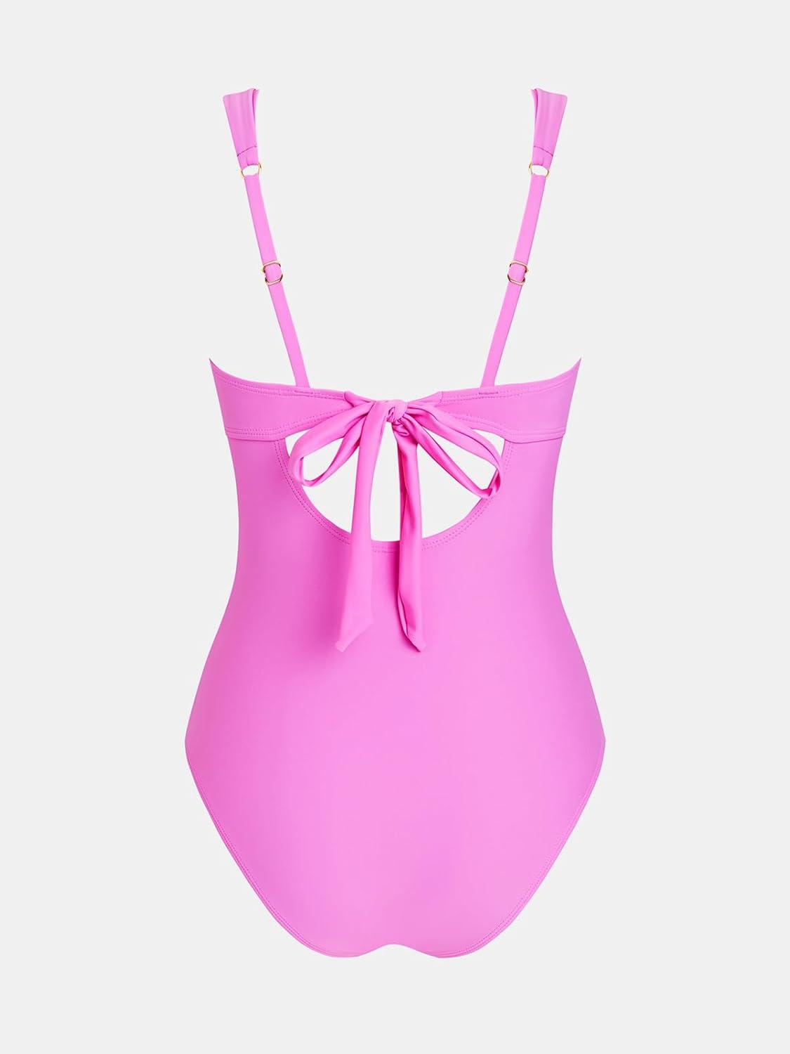 CUPSHE Women’s One Piece Swimsuit Sweetheart Neck Keyhole Bathing Suit Ruching Cutout Back Wide Straps Adjustable(Bright Pink)