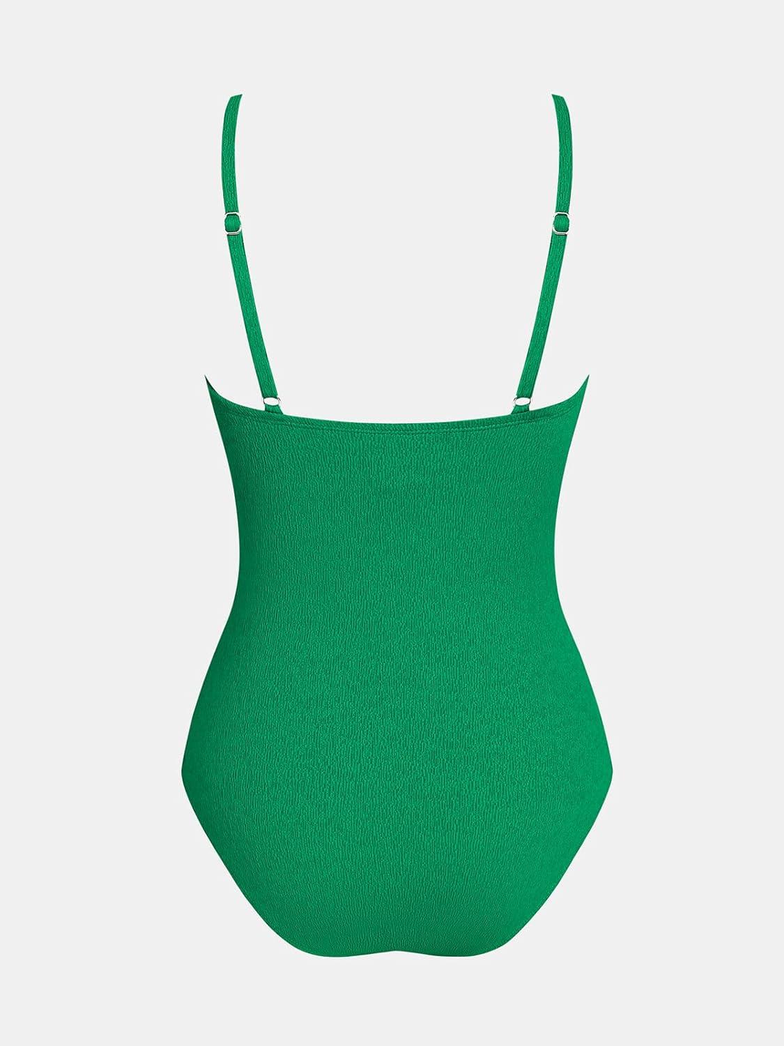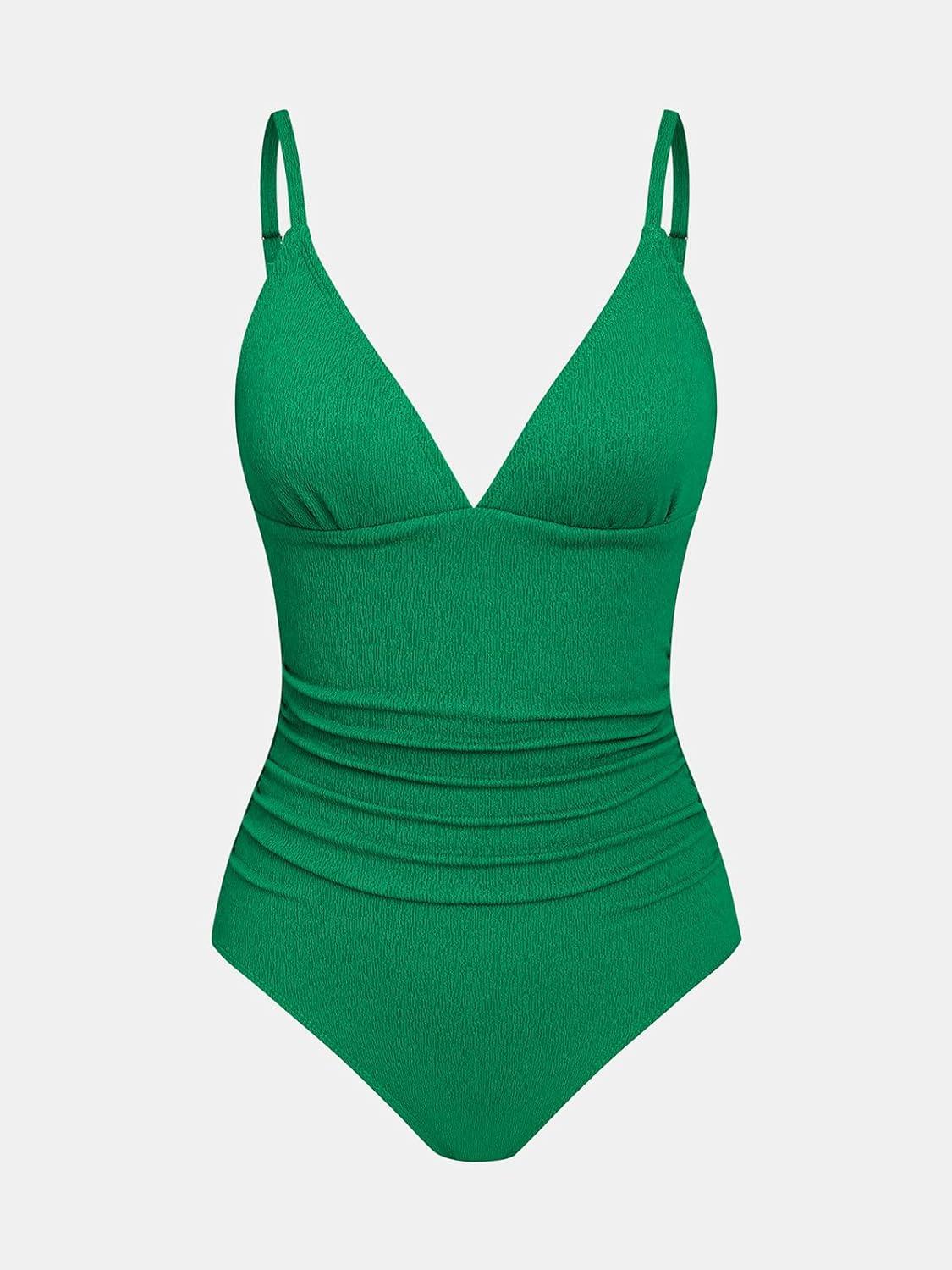 CUPSHE Women’s One Piece Swimsuit Tummy Control V Neck Bathing Suits(Jade Green)