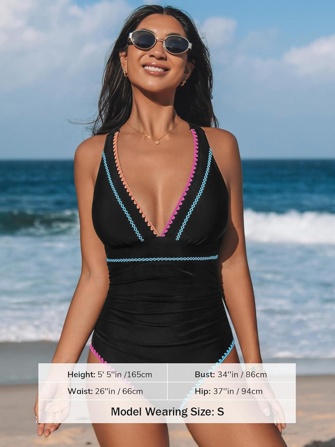 Be the first to review “CUPSHE Women’s One Piece Swimsuit V Neck Shell Stitched Bathing Suit Adjustable Crisscross Strappy Ruched Swimwear(Black/Multicolor)”