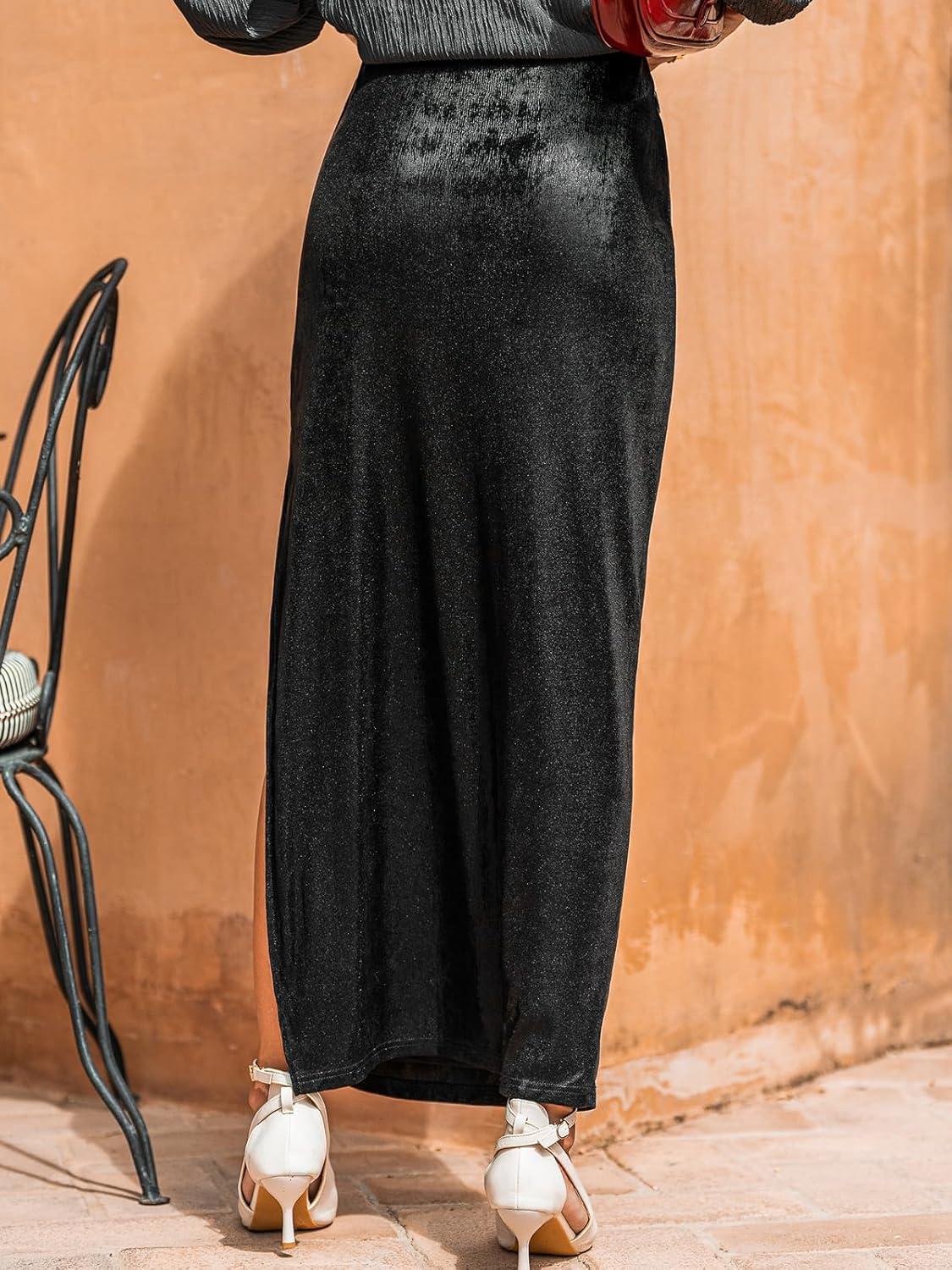 CUPSHE Women’s Satin Skirt Flowy A Line Cocktail Party Wedding High Waist Long Midi Skirts Vacation Outfits(2-black)