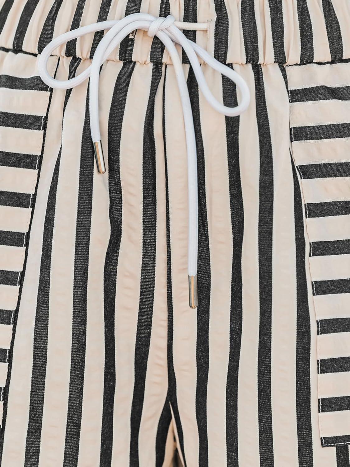 CUPSHE Women’s Striped Shorts High Waist Smocked Drawstring Pocket Short(Black Stripe)