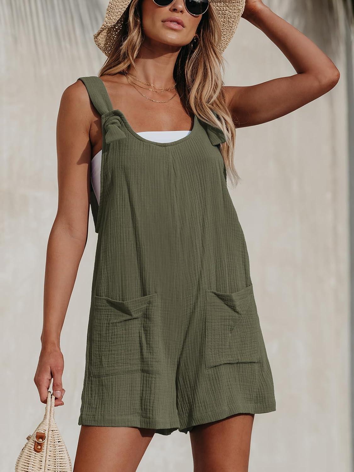 CUPSHE Women’s Summer Sleeveless Overall Adjustable Loose Jumpsuit Beach Romper Travel Vacation Outfits with Pockets(Dark Green)