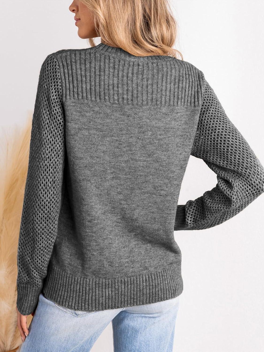CUPSHE Womens Sweaters Casual Long Sleeve Pullover Sweaters Crewneck Soft Knit Jumper Top(Grey)
