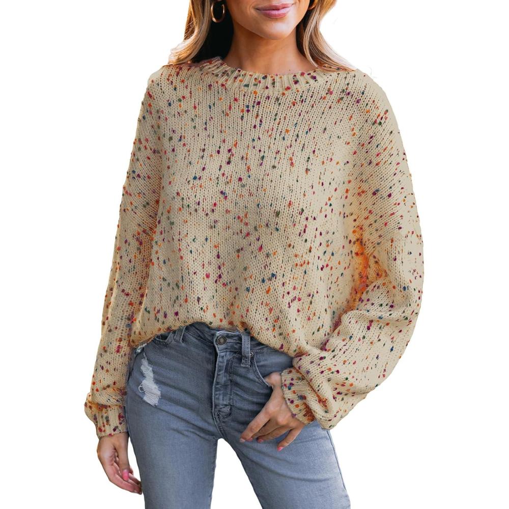 CUPSHE Womens Sweaters Rainbow Pom Casual Long Sleeve Ribbed Knit Pullover Sweater Tops(Teddy)