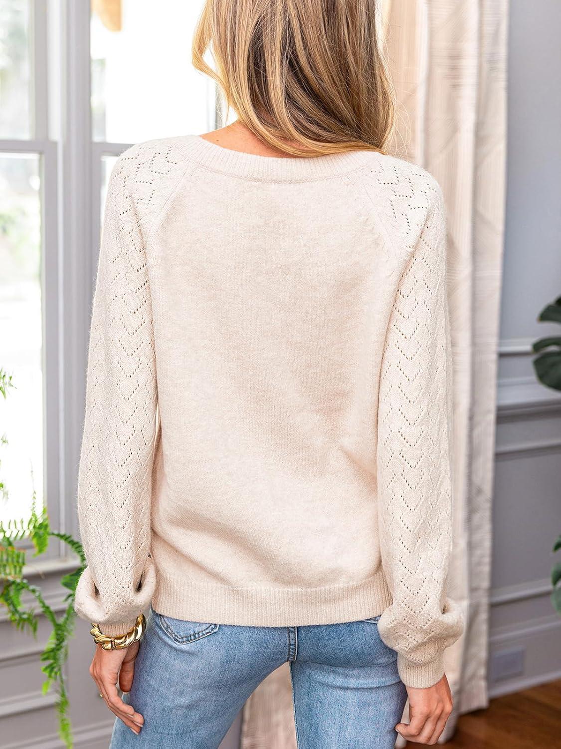CUPSHE Womens Sweaters V Neck Long Sleeve Lightweight Soft Crochet Casual Pullover Sweater Tops(B-beige)