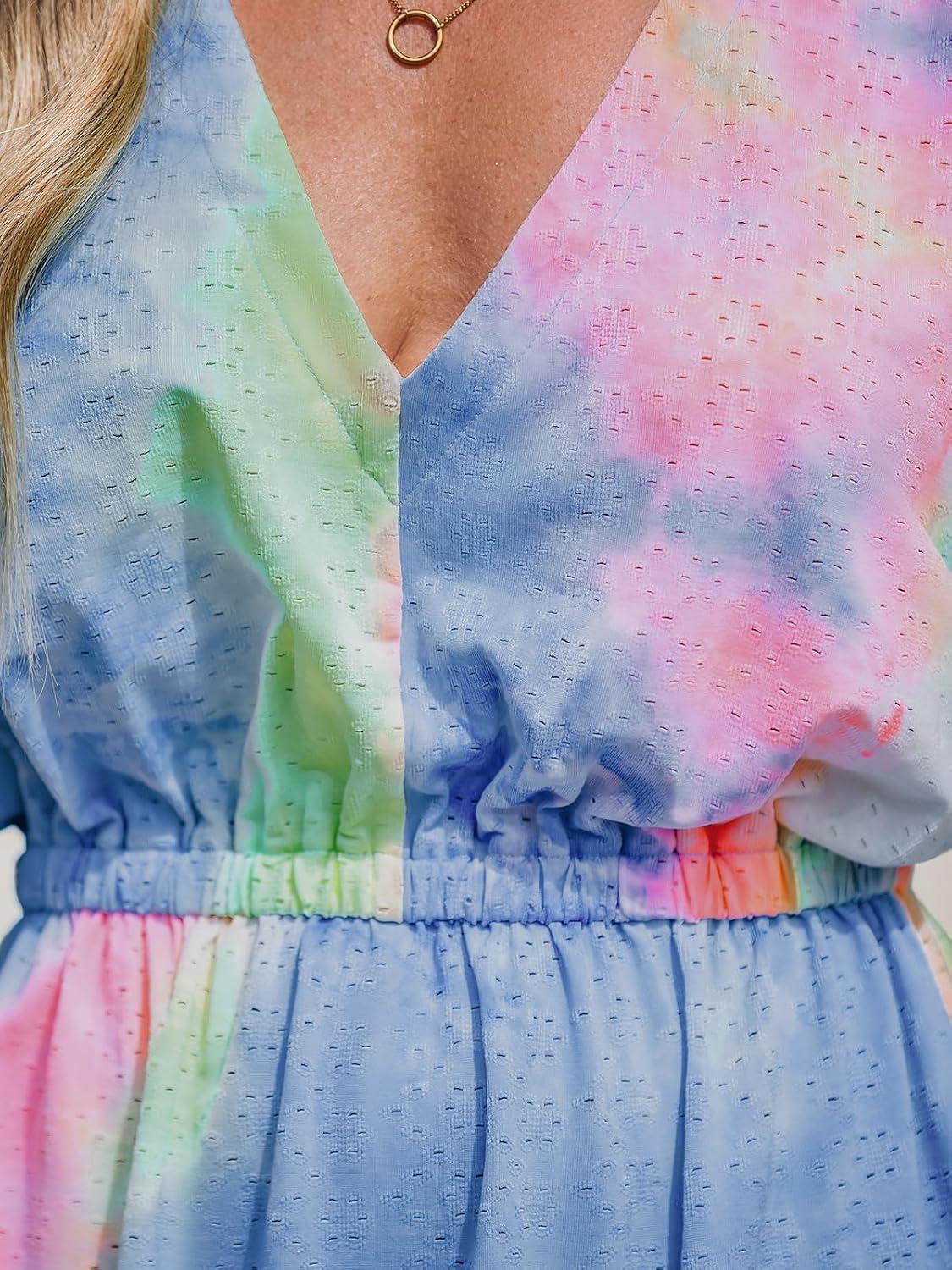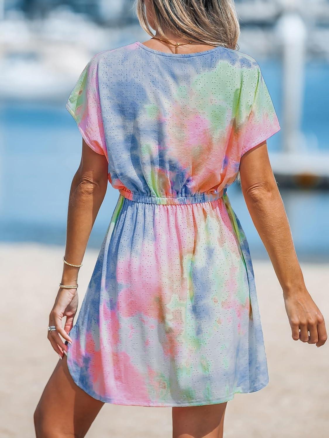 CUPSHE Women’s Swimsuit Coverup Dress Short Sleeve Casual Summer Printed Beach Cover Ups Sundress(Tie Dye)