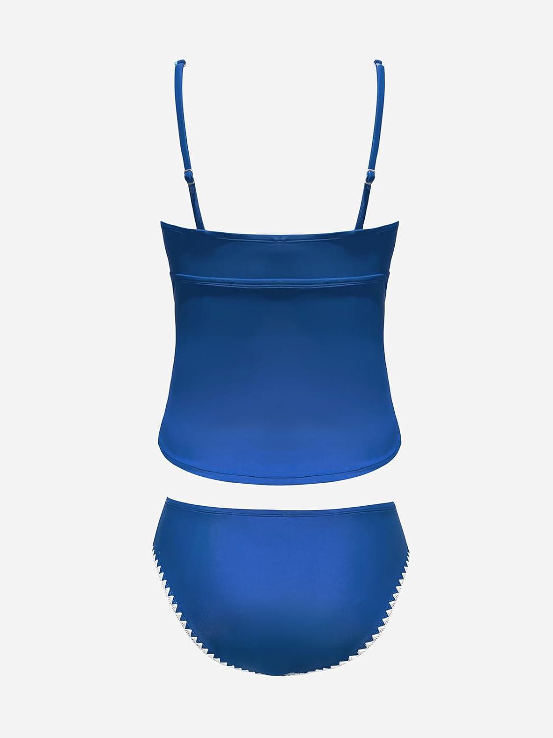 CUPSHE Women’s Tankini Sets Two Piece Swimsuit Scoop Neck Tummy Control Adjustable Straps Shell Stitched(P-slate Blue)