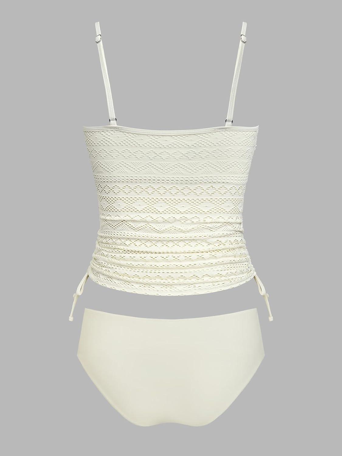 CUPSHE Women’s Tankini Sets Two Piece Swimsuit Square Neck Mesh Bathing Suit Adjustable Spaghetti Straps Drawstring(Beige)