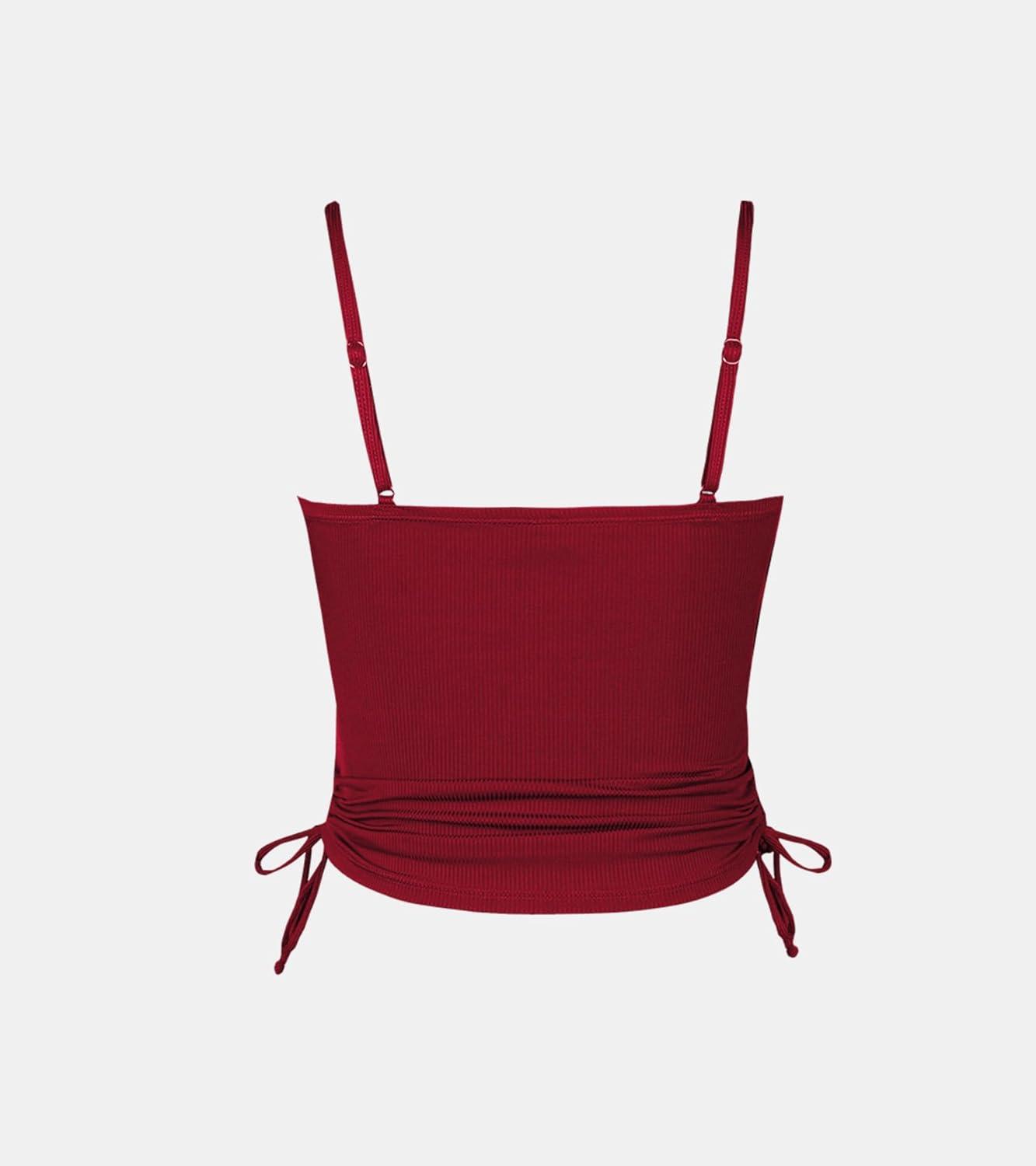 CUPSHE Women’s Tankini Top Swimsuit Tummy Control Swim Top Only Drawstring Bathing Suit Tank Top Textured(Maroon Red)