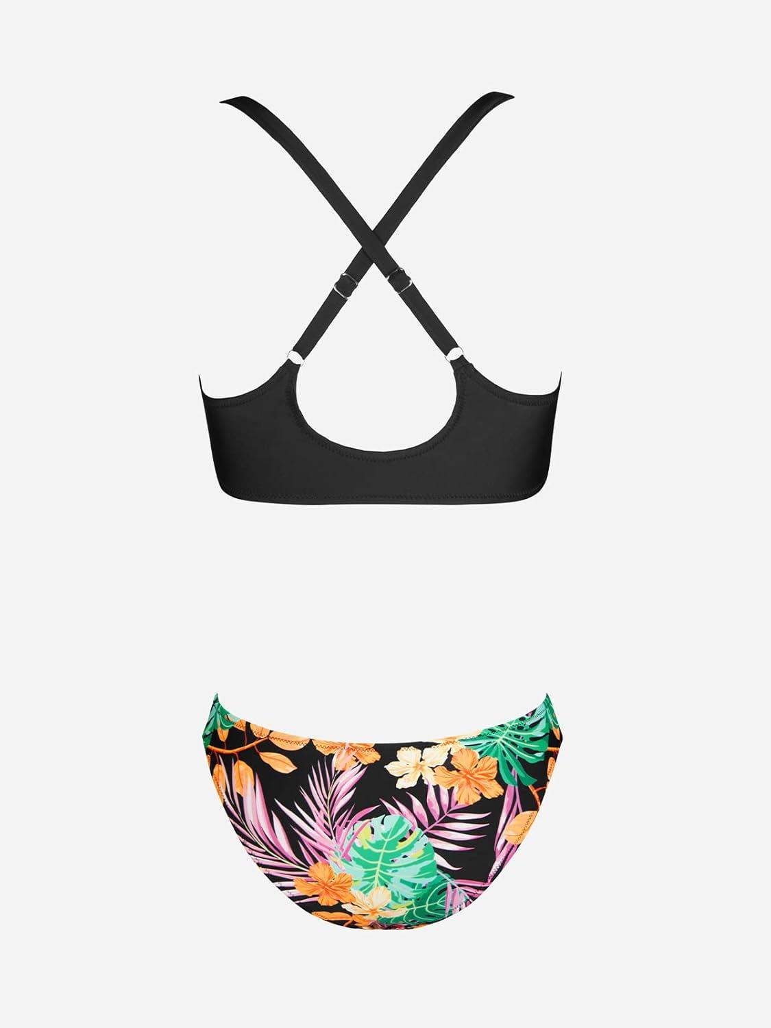 CUPSHE Women’s Two Piece Bikini Set Floral Print Knot Bunny Tie(Black)